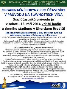 Byla vložena nová akce do Kalendáře akcí – Slovácké slavnosti vína a otevřených památek – 13.09.2014. Časy odjezdu autobusů budou doplněny v průběhu týdne.