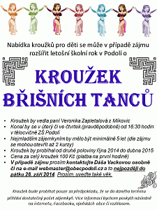 Byla vložena nová akce do Kalendáře akcí – Kroužek břišních tanců – uzávěrka přihlášek – 21.09.2014.