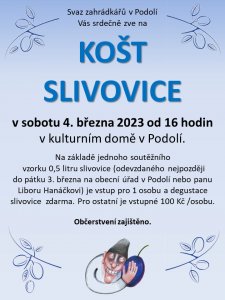 Byla vložena nová akce do Kalendáře akcí – Košt slivovice – 04.03.2023.