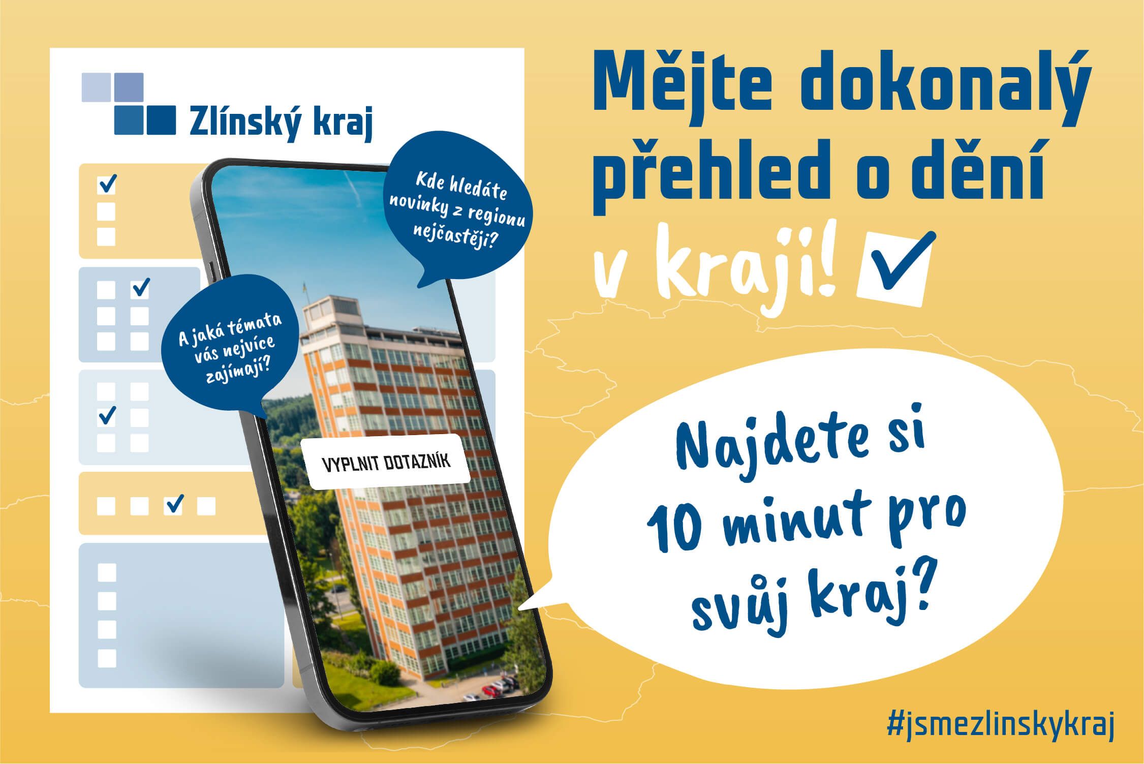 ve spolupráci s Fakultou multimediálních komunikací UTB jsme zahájili dotazníkové šetření ke Komunikaci a vnímání Zlínského kraje pohledem občanů. Tento průzkum bude probíhat až do konce března 2022 a naším cílem je zjistit, jaké informace z regionu obyvatele nejvíc zajímají, kde je nejčastěji hledají a kde by je ideálně chtěli nacházet. Zajímá nás také jejich postoj k hodnotám a vnímání Zlínského kraje jako takového.