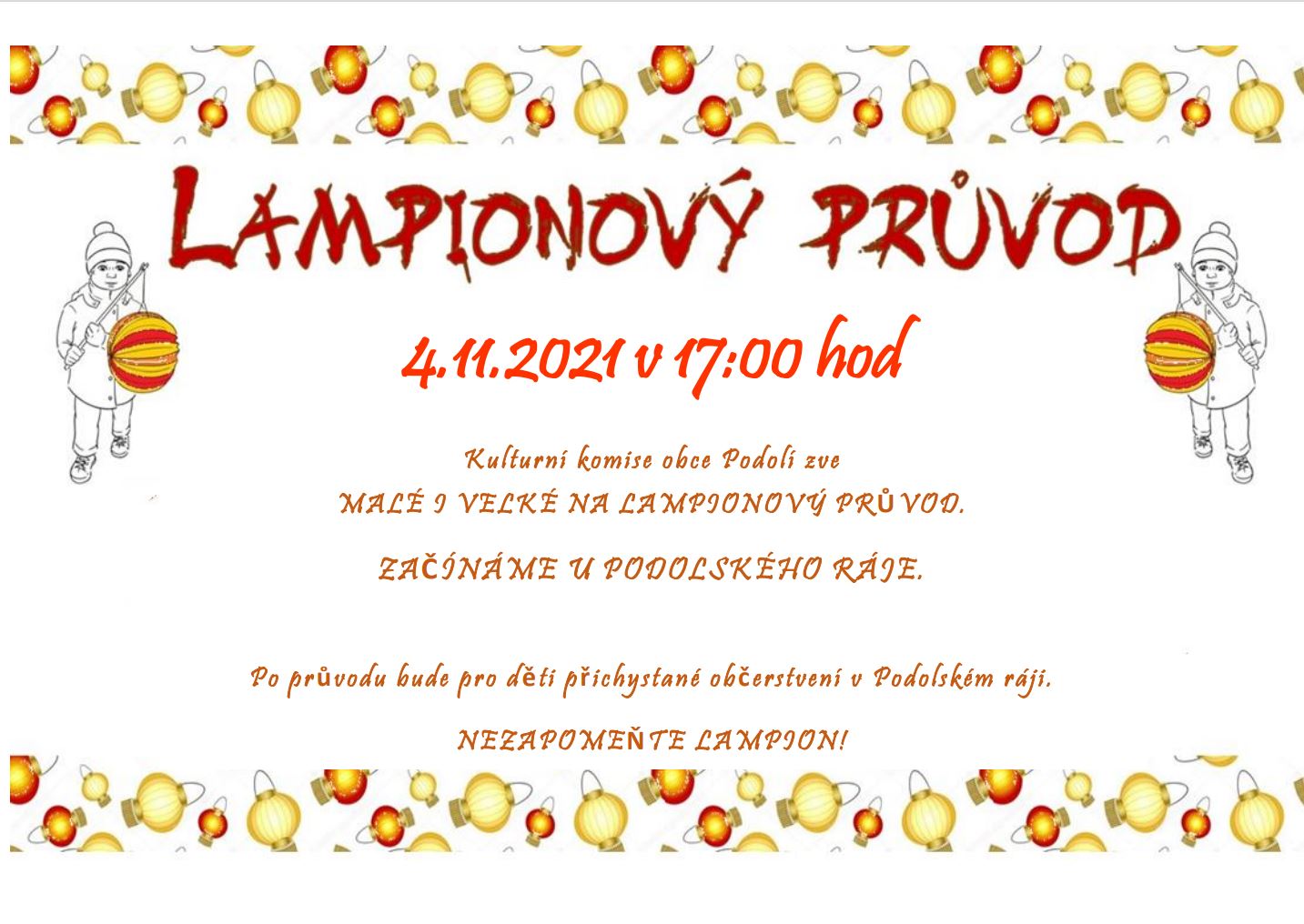 Byla vložena nová akce do Kalendáře akcí – Lampionový průvod – 04.11.2021.