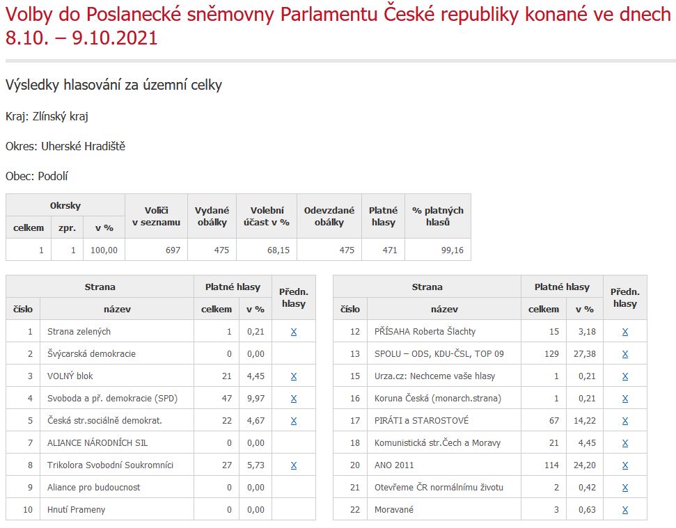 Vloženo nové Hlášení rozhlasu: Český zahrádkářský svaz Podolí pořádá hodovou výstavu ovoce a zeleniny. Zájemci z řad zahrádkářů a ostatních občanů, kteří májí zájem o vystavení svých výpěstků můžou je přinést do budovy Podolského ráje v pátek 15.10.2021 v čase od 16 do 19 hodin. Všem děkujeme.