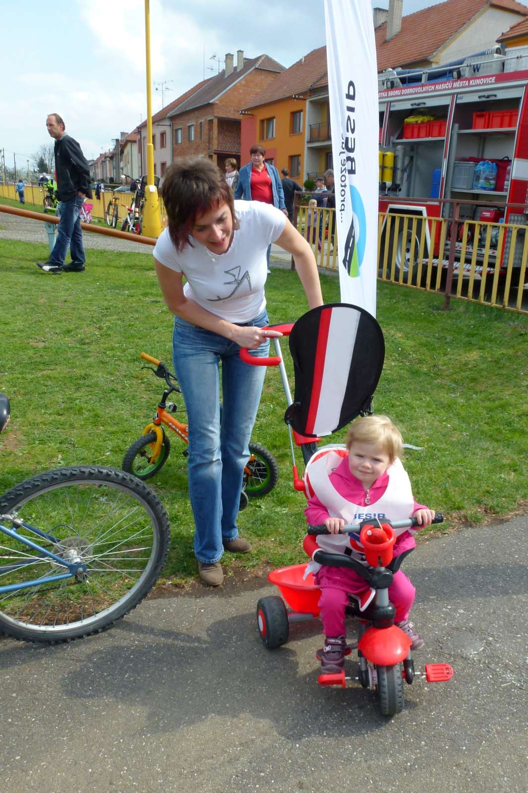 Duben je měsíc bezpečnosti, a proto kulturně-společenská komise ve spolupráci se sportovní komisí, ZŠ Podolí a s Koordinačním centrem BESIPu zorganizovali akci Jízda zručnosti. Ačkoliv to celý týden nevypadalo moc dobře, v sobotu po obědě se počasí přeci jen umoudřilo a celé odpoledne na nás svítilo sluníčko. Na hřišti na Záhumní děti prošly kontrolou technického stavu kol, udělaly testy dopravních znalostí a hlavně se pokusily uspět v dovednostní jízdě. Všechny děti dostaly za účast v soutěži několik dárků a nejlepší jezdci pak byli ocenění diplomem a dalšími hodnotnými cenami. Velkým lákadlem pro děti byly také šlapací autíčka a hlavně auta bezpečnostních složek, hasičů a Policie ČR, kteří se také akce na naše pozvání zúčastnili. Děti také soutěžily v pohádkovém kvízu o hezké ceny od Nadace Děti-kultura-sport a nakonec si opekly špekáčky.