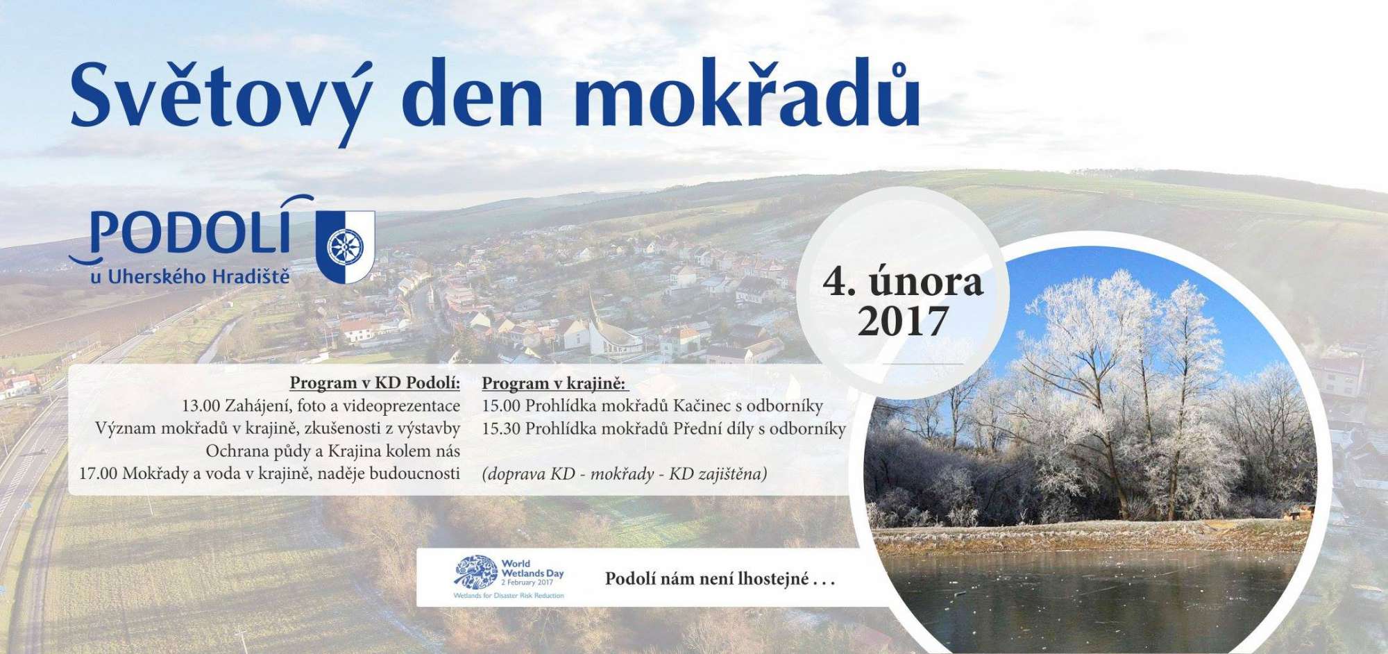 V Podolí jsme letos poprvé oslavili Světový den mokřadů přednáškami, besedami a vycházkou k mokřadům. Konference přilákala více jak šedesát odborníků, novinářů, starostů z okolních obcí i občanů Podolí. Řeč se točila kolem využívání krajiny, mokřadů, živočichů v jejich okolí, ale také se diskutovalo na téma kořenových čističek odpadních vod či vlivu zemědělství na půdu a krajinu.