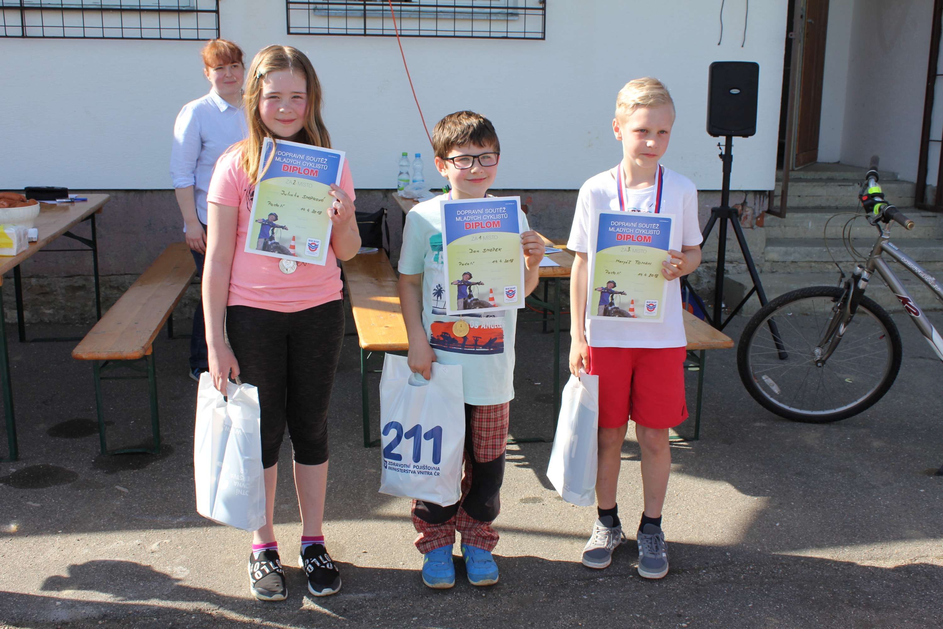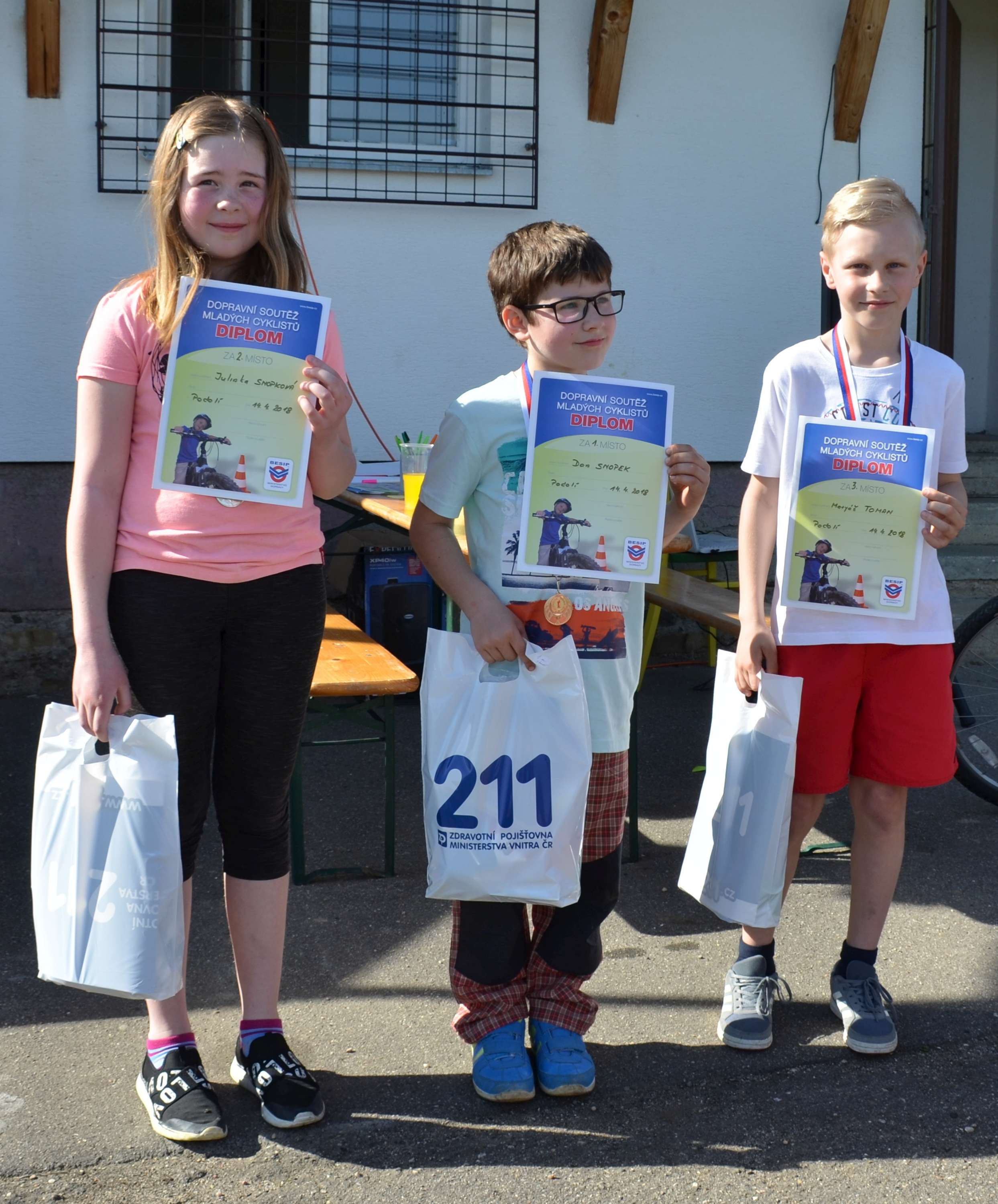 V sobotu se za slunného počasí uskutečnila na fotbalovém hřišti již tradiční akce pro děti – Jízda zručnosti. Jak je již zvykem, děti vyplnily test dopravních znalostí, jejich kolo prošlou technickou kontrolou a nakonec projely dráhu s překážkami. Za každý ze třech výše zmíněných úkolů získávaly děti body, které se nakonec sečetly. Nakonec byli vyhlášeni vítězové ve dvou kategoriích, kteří získali nejen plnou tašku krásných dárečků, ale hlavně i medaile!