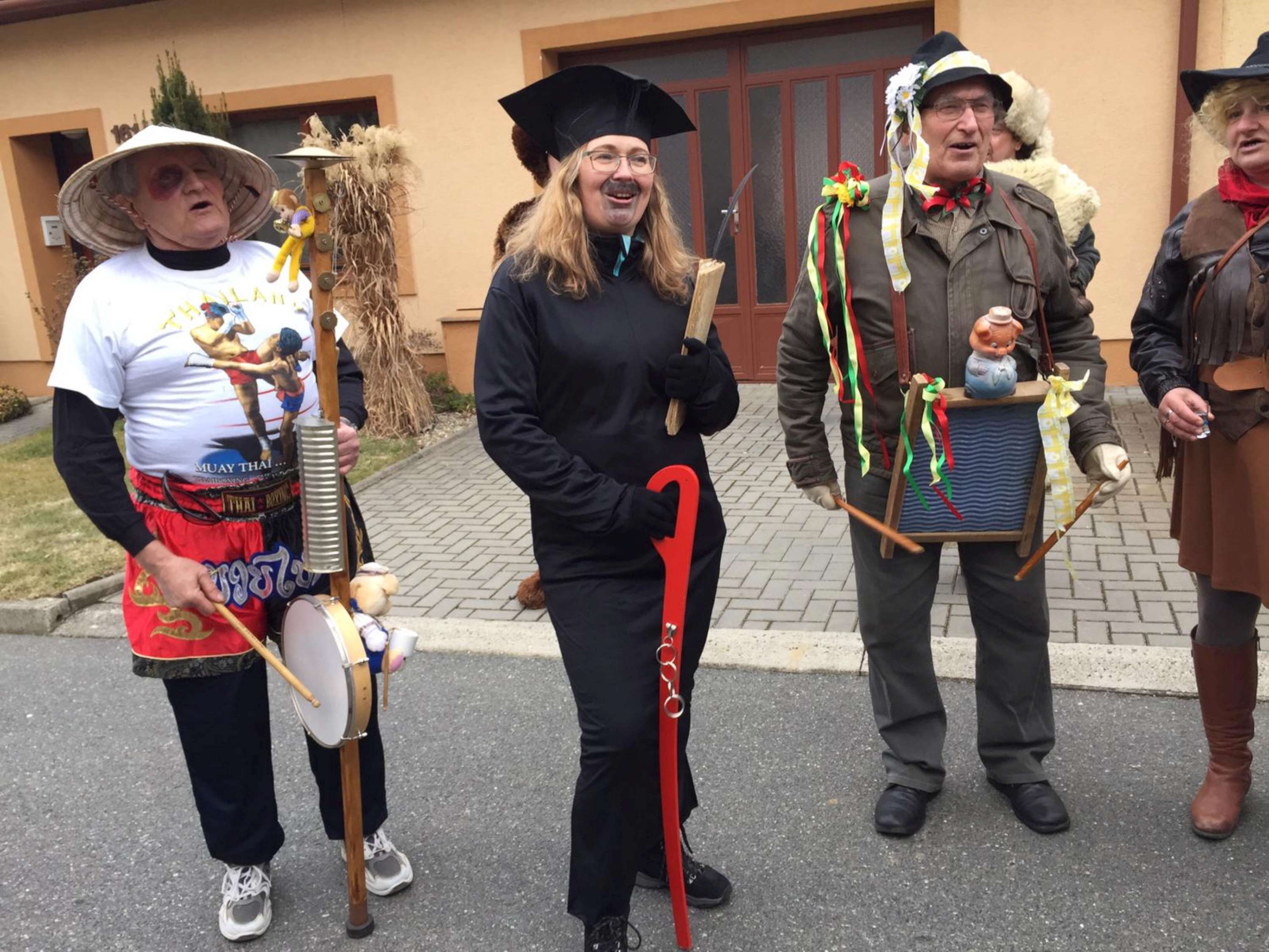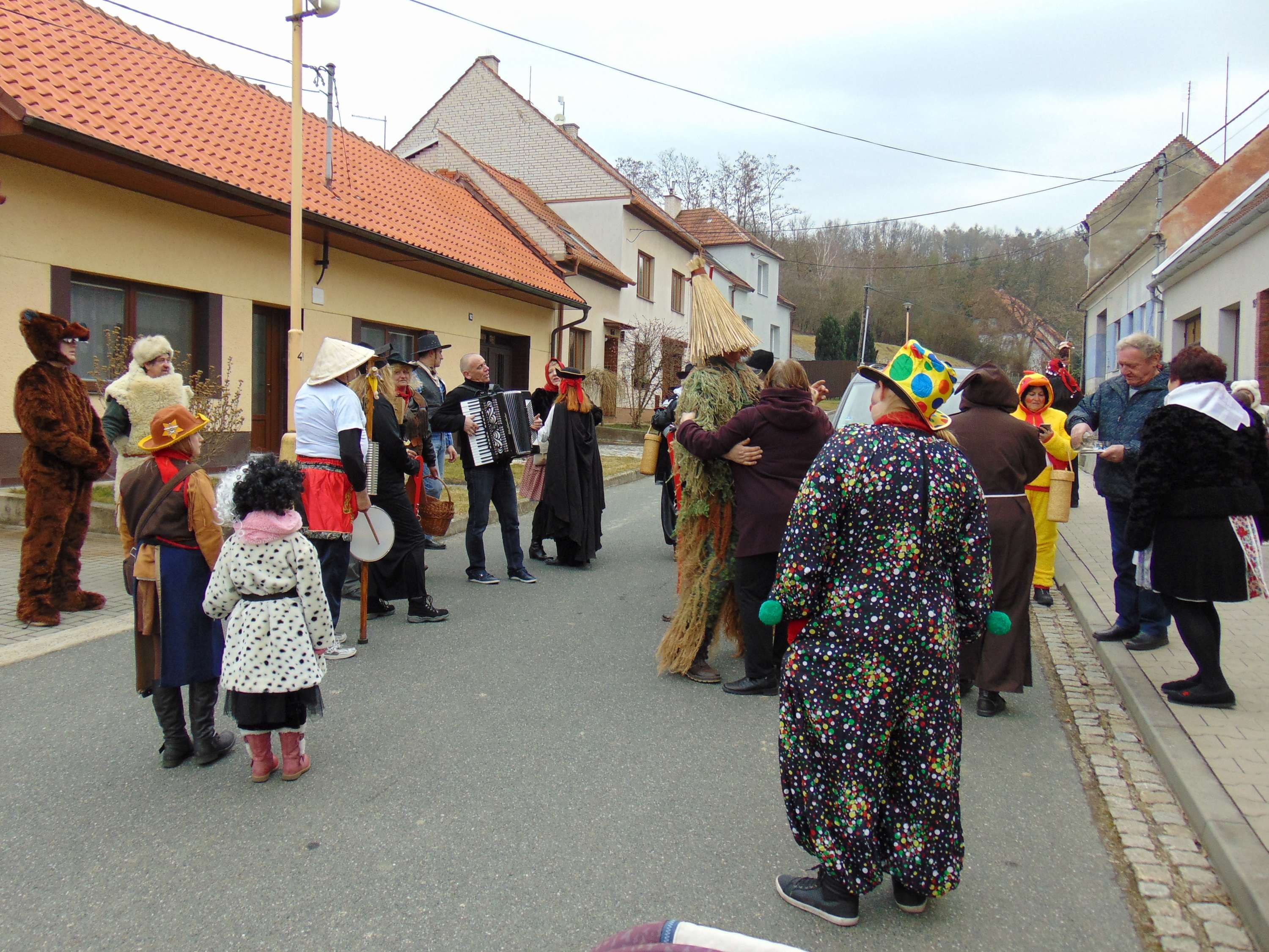 I letos vyrazila do ulic Podolí čtyřicítka masek a krojovaných na tradiční fašankovou obchůzku. V průvodu nechyběl slaměný panák se šavlí, na kterou se napichovala slanina, vodník, cigánka, permoník, medvěd, kterého vedl na řetězu medvědář, jeptiška a mnich, šašci, piráti, ježibaby, mušketýři, kovbojové a mnoho dalších. Díky všem, co se zúčastnili při obchůzce i těm, co otevřeli dveře a pohostili maškary nebo přispěli do pokladničky.