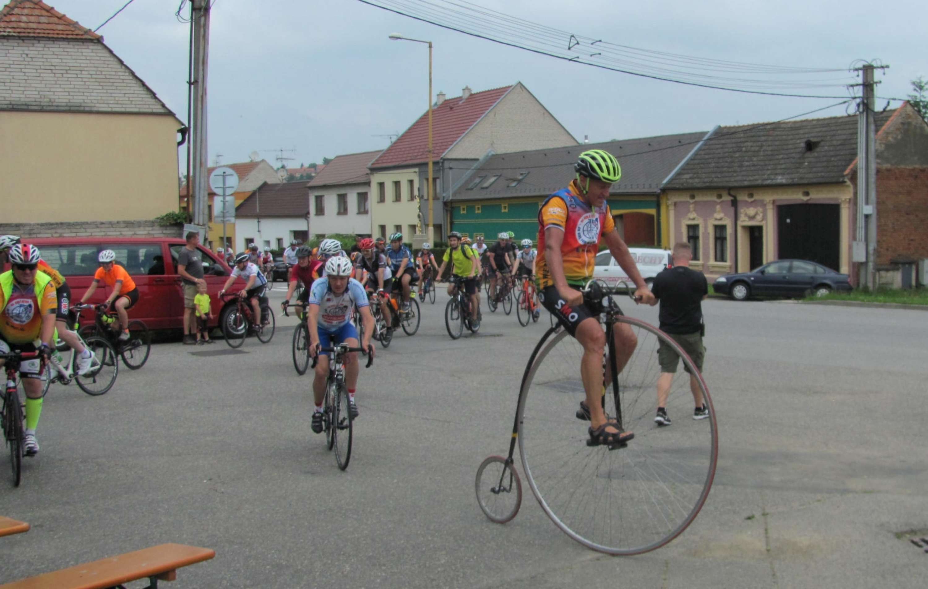Charitativní cyklotour Na kole dětem 2020 v pátek po poledni dorazila opět po dvou letech do Podolí v čele s Josefem Zimovčákem na vysokém kole. Původně měl peloton dorazit už na konci května, ale člověk míní a koronavirus mění. A proto se letos přivítání před obecním úřadem muselo obejít bez větší slávy a komorněji. Ale i tak dorazila do Podolí osmdesátka cyklistů a přivítání bylo jako vždy velmi srdečné. Cílem 11. ročníku, kdy cyklisté během 11 dní urazí 1 238 km a zastaví se v 60 městech a obcích po celé České republice je vybrat peníze na onkologicky nemocné děti.