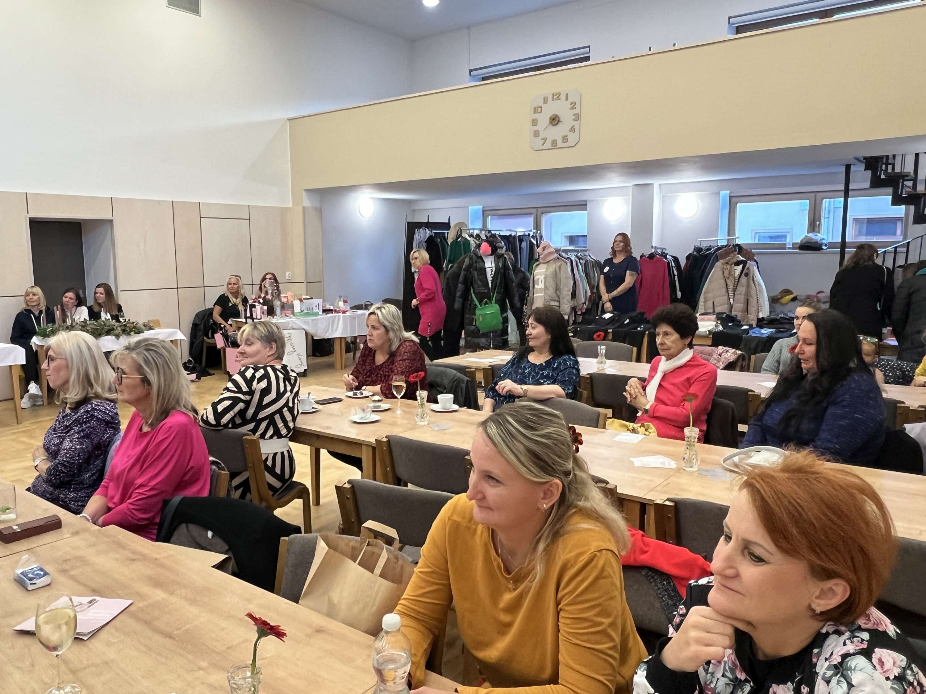 Během odpoledne proběhly módní přehlídky módy pro každý den, pyžam i společenských šatů, na kterých se představilo hned několik modelek z Podolí. Na programu byla i prezentace kosmetiky Mary Key, výrobků Just a Nahrin, floristické dílny Adeline i ukázka obrázků krajinářky Jany Javorové. Na závěr bylo vylosováno hned několik dam, které si odnesly krásné dárky.