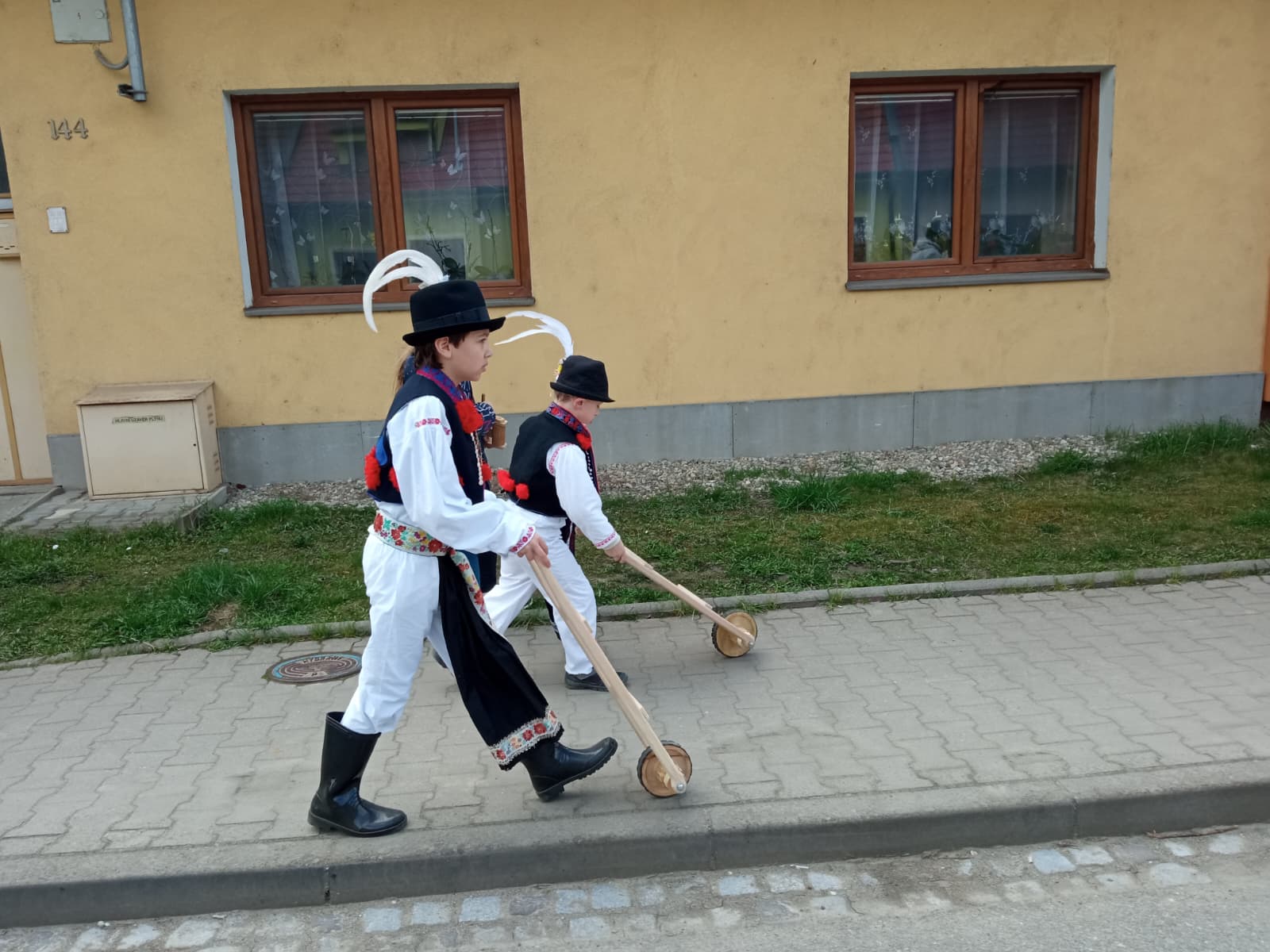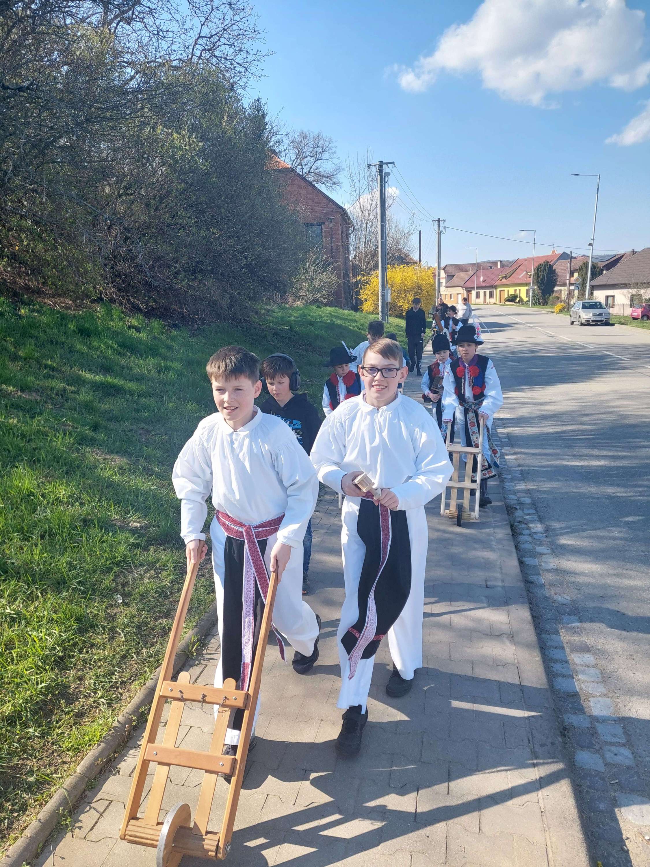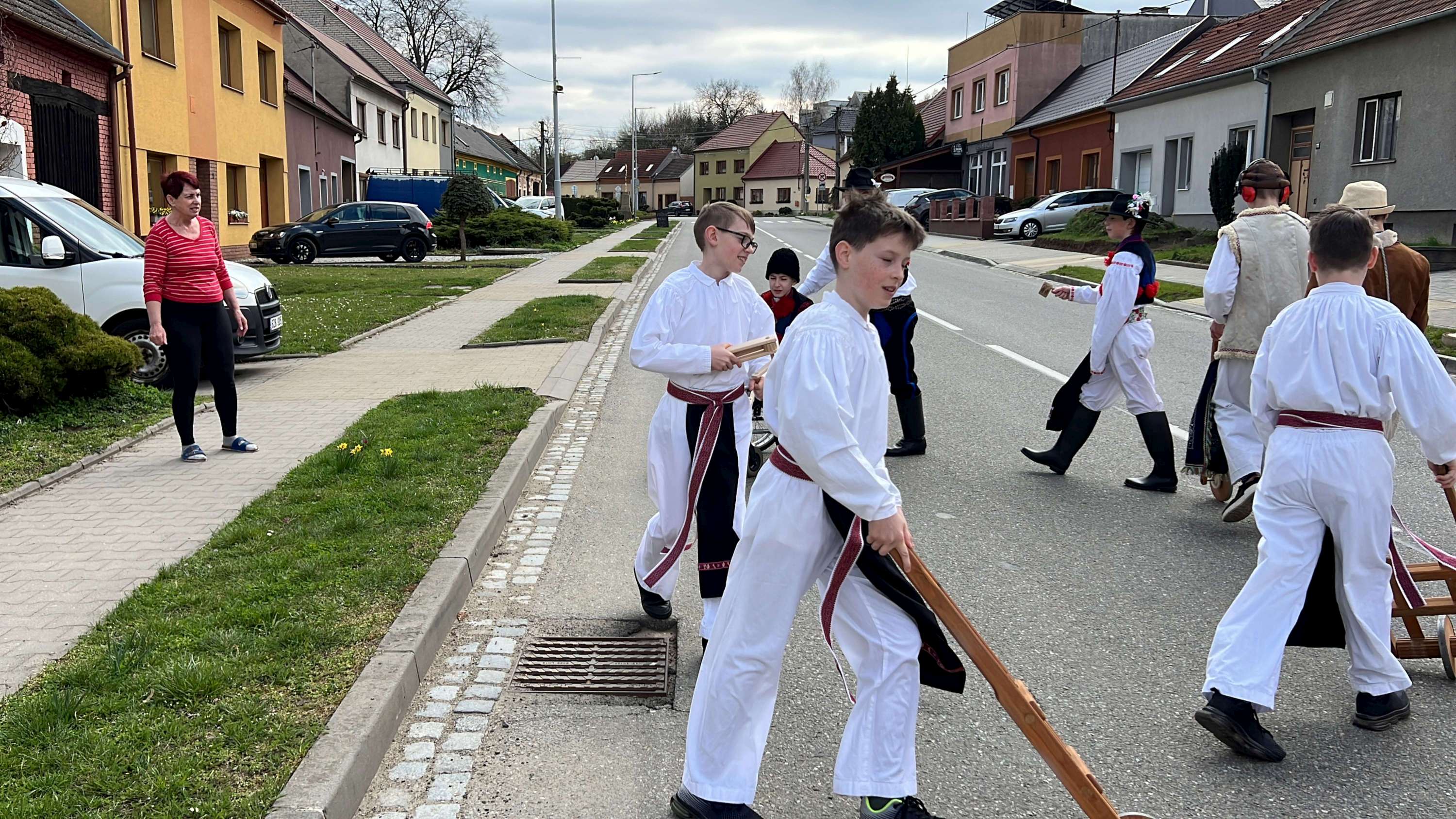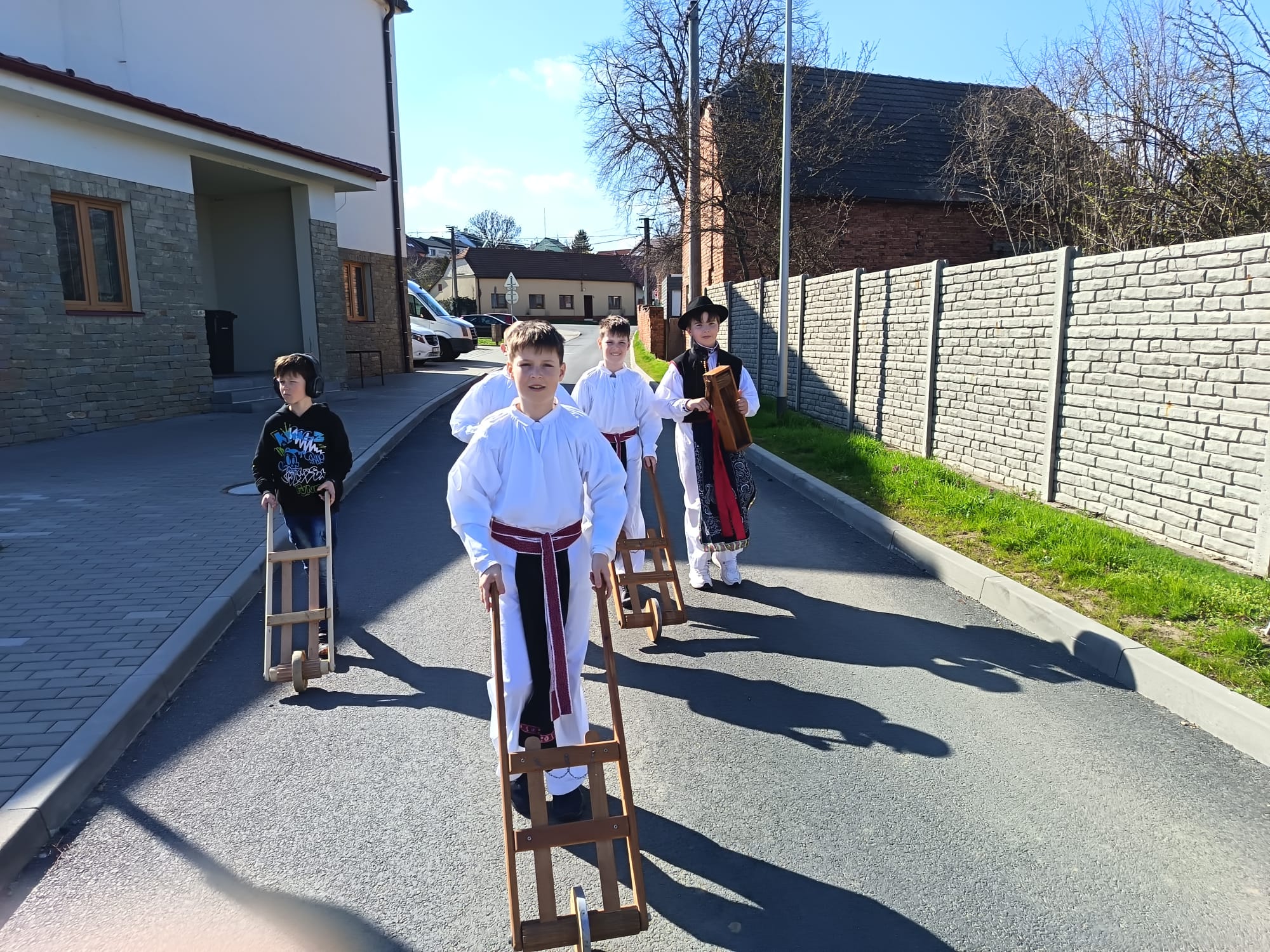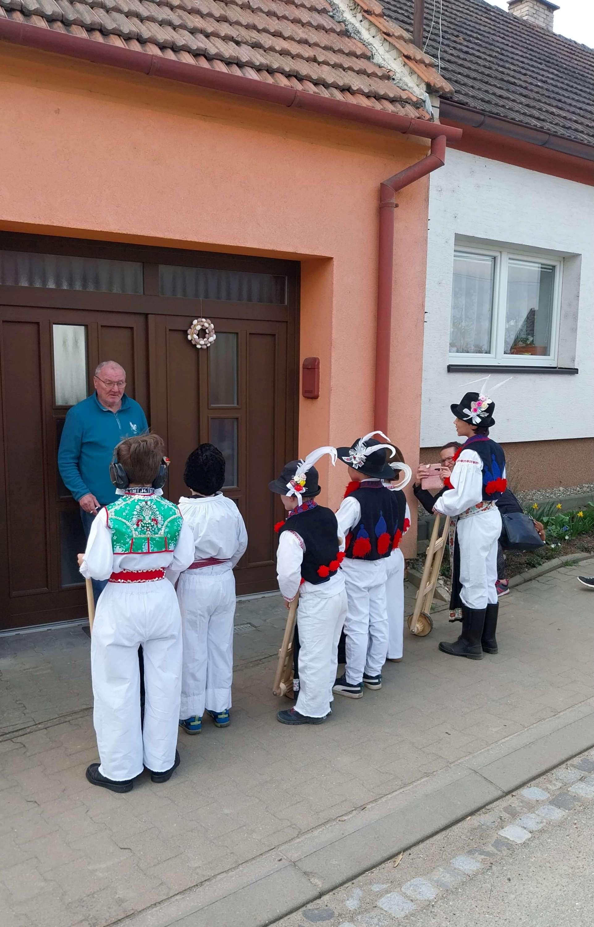 Na Velký pátek, již oblečeni v krojích, opakovali tento rituál hned třikrát. Při poledním hrkání se dokonce setkali na břehu Olšavy u podchodu obchvatu s hrkači ze sousedních Popovic.