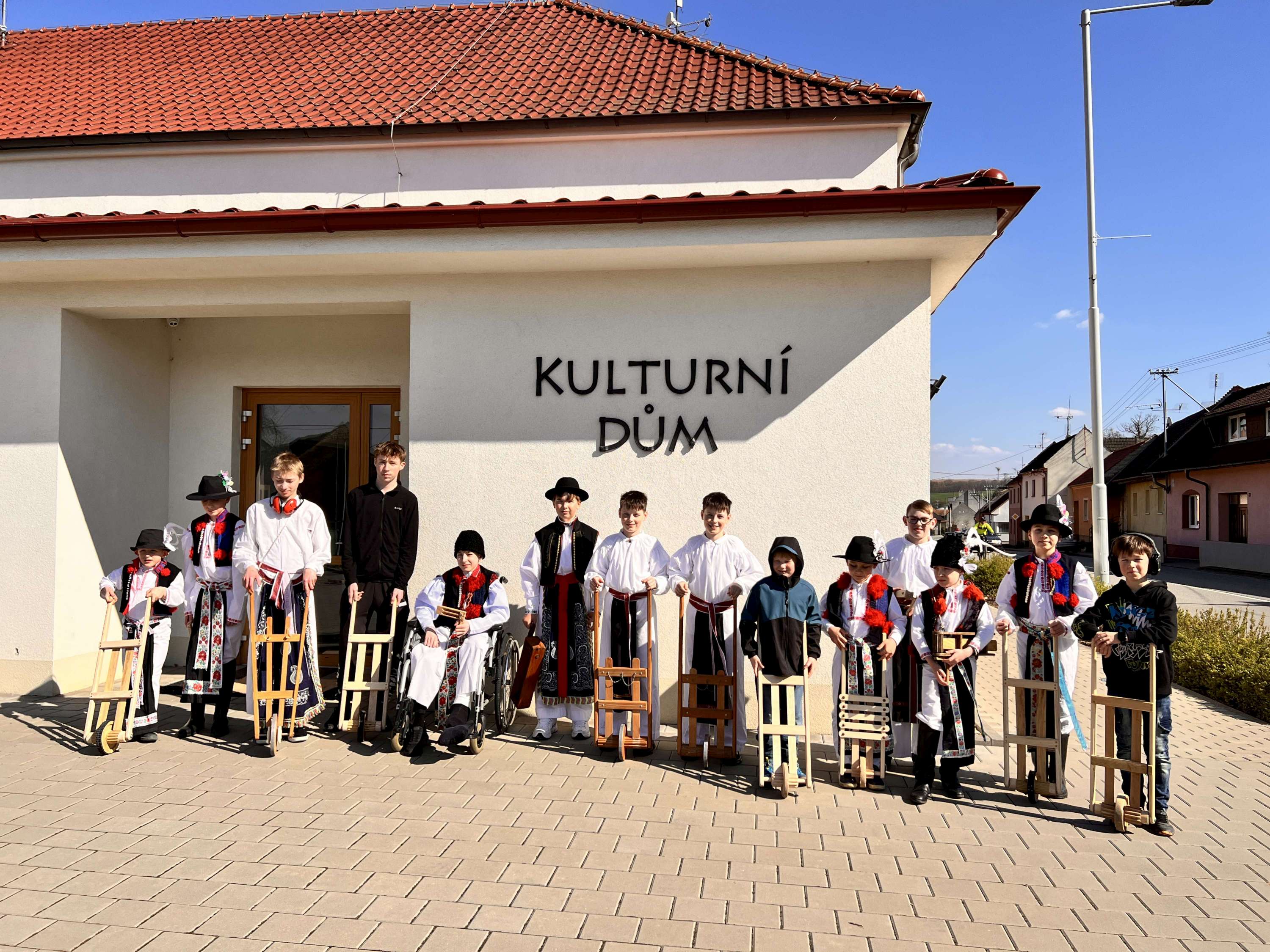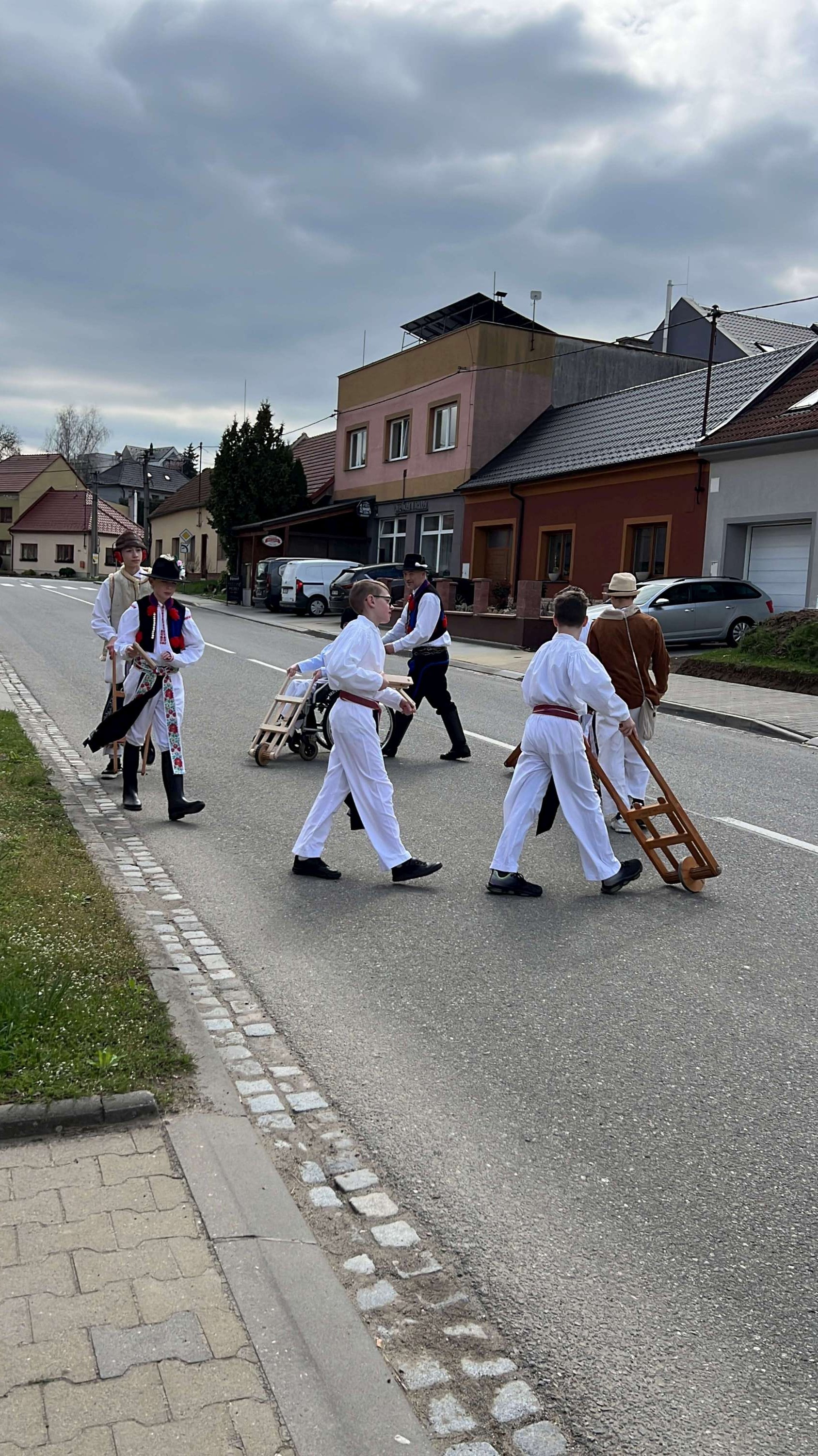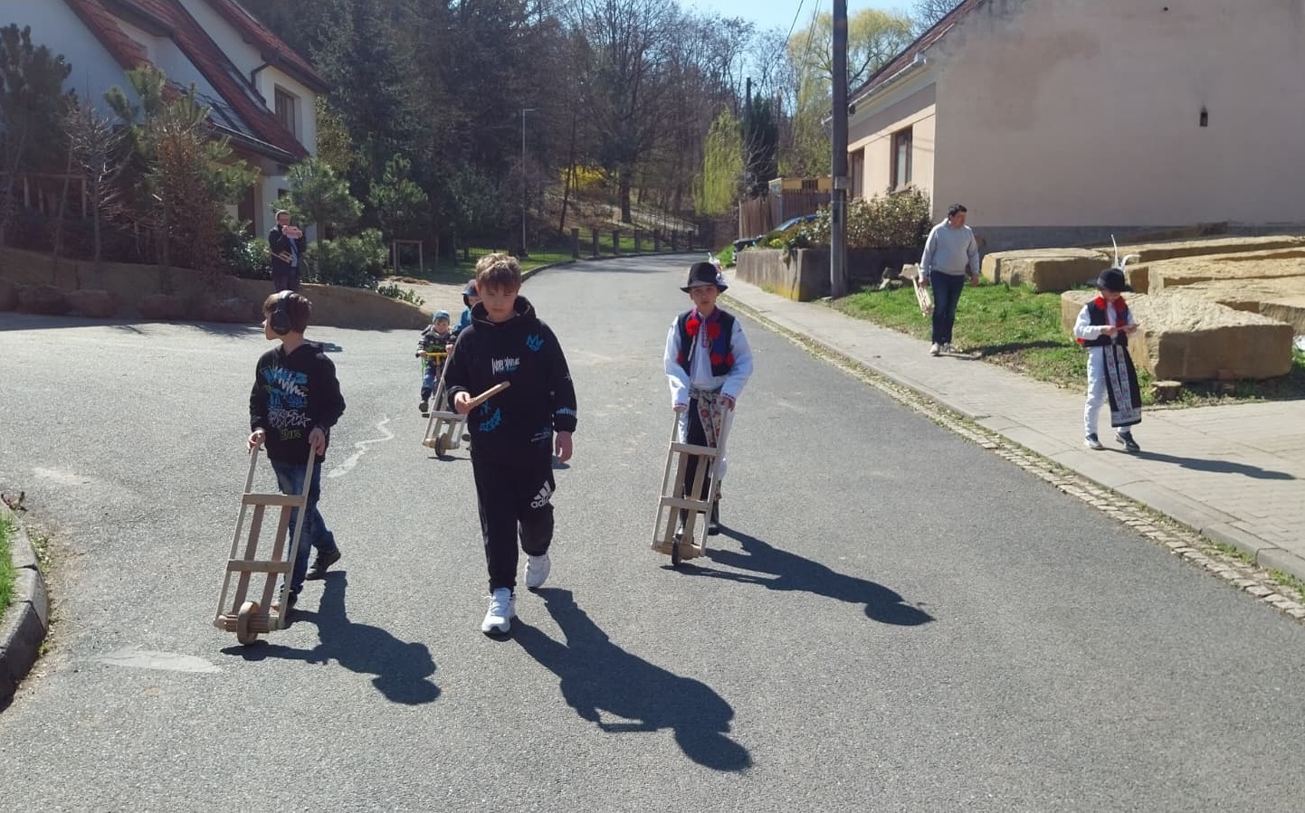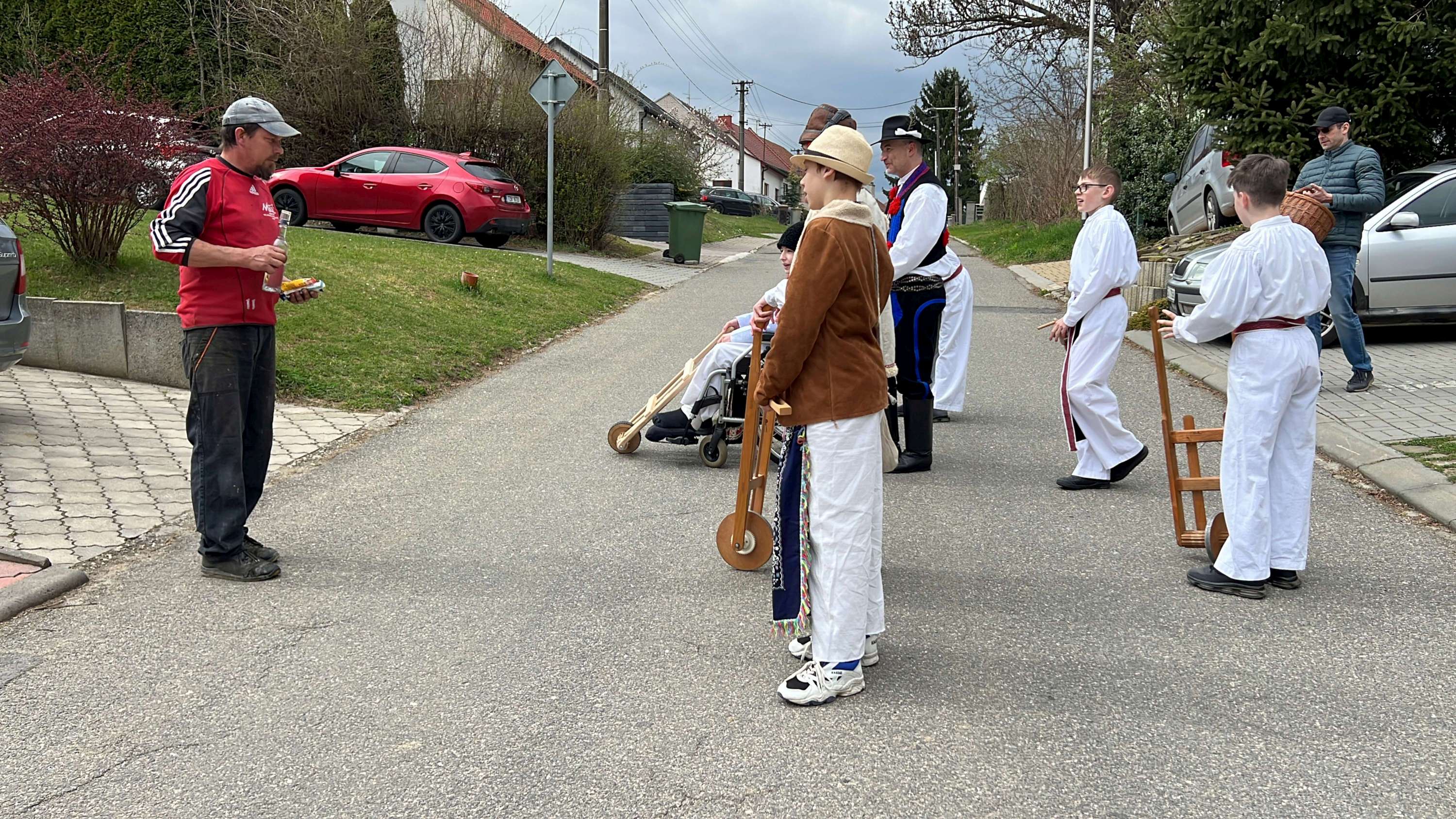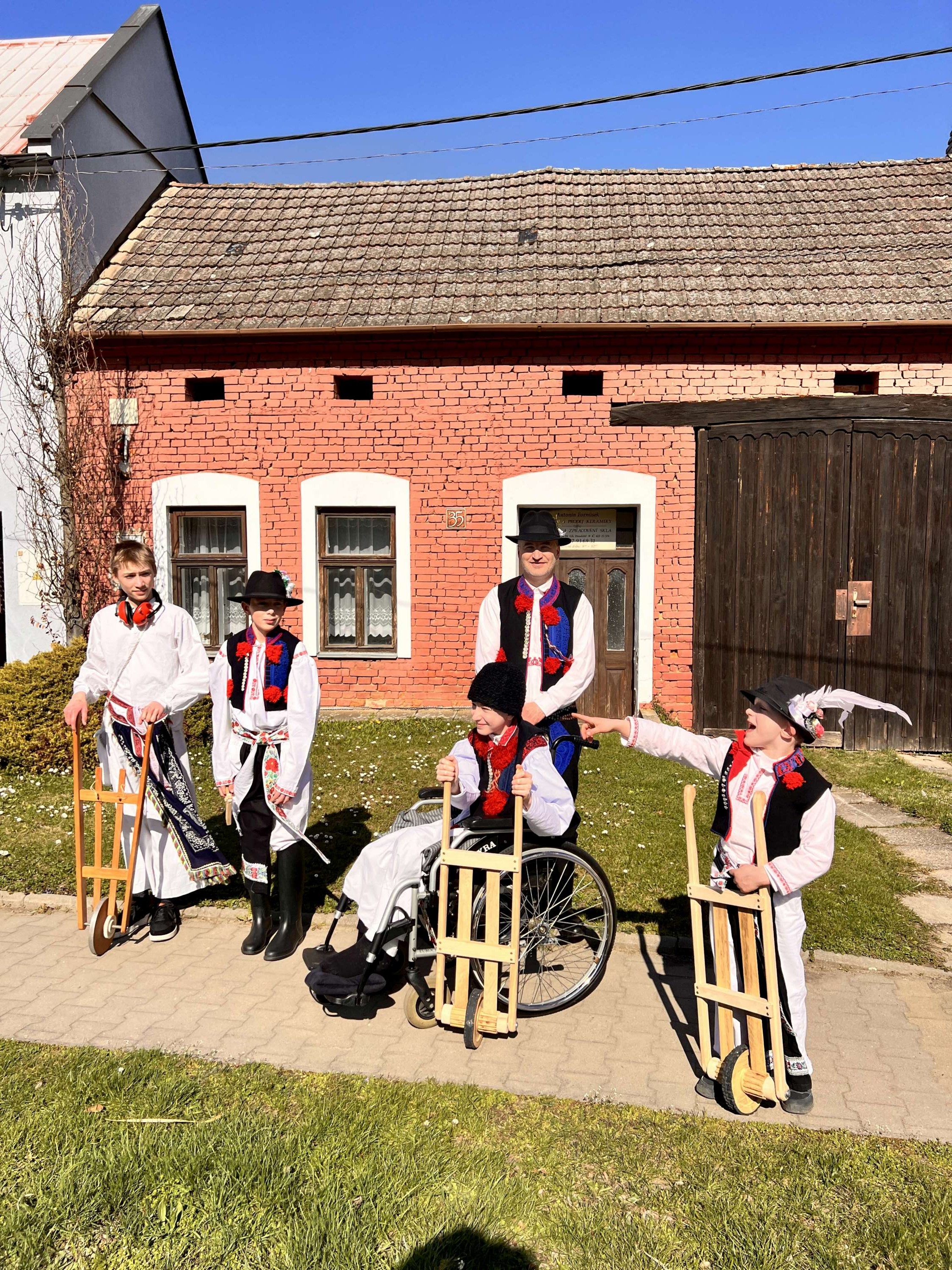 Na Velký pátek, již oblečeni v krojích, opakovali tento rituál hned třikrát. Při poledním hrkání se dokonce setkali na břehu Olšavy u podchodu obchvatu s hrkači ze sousedních Popovic.