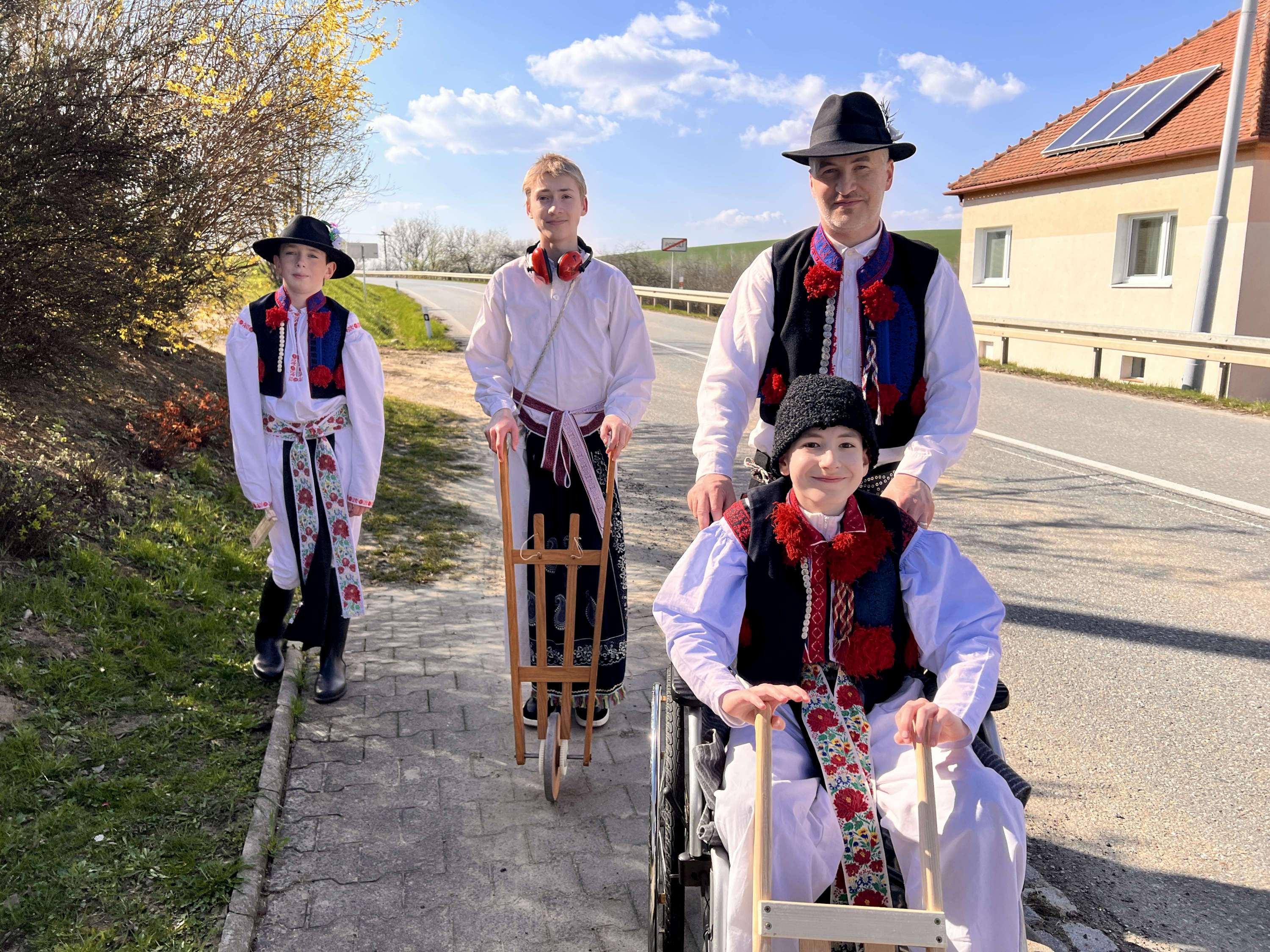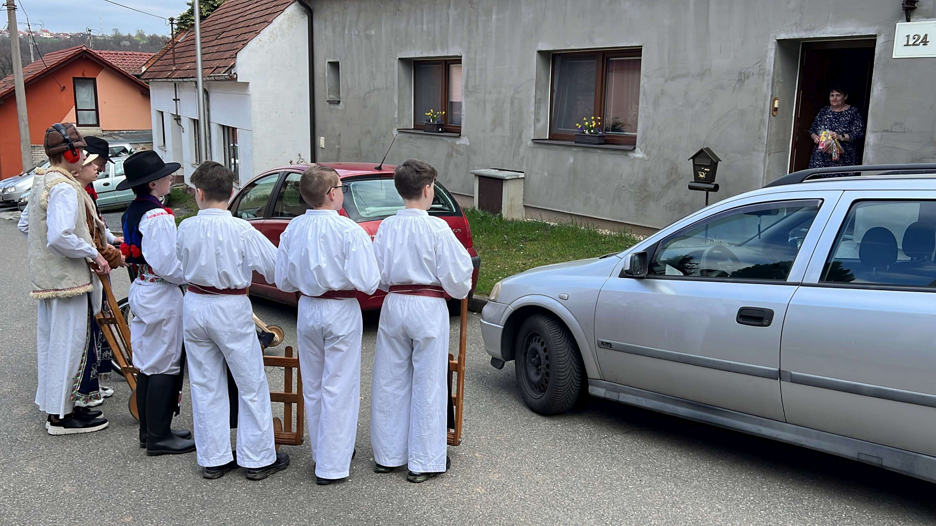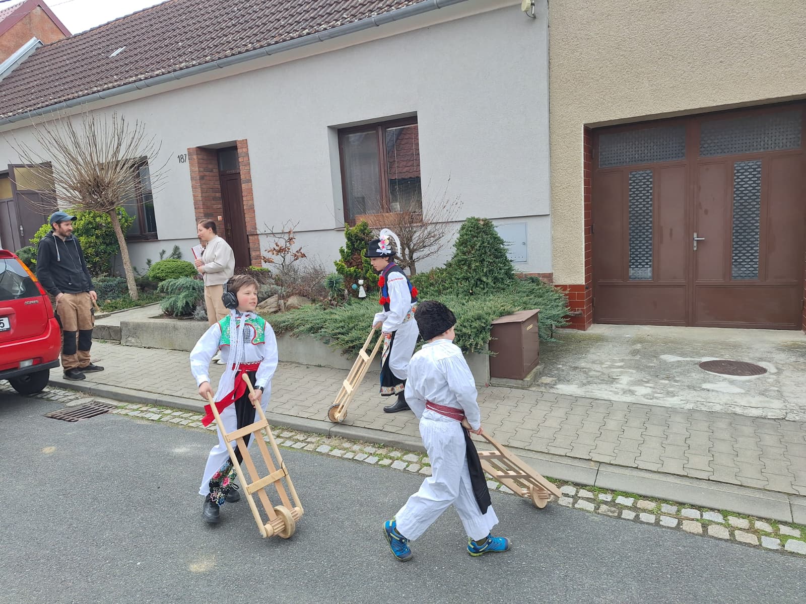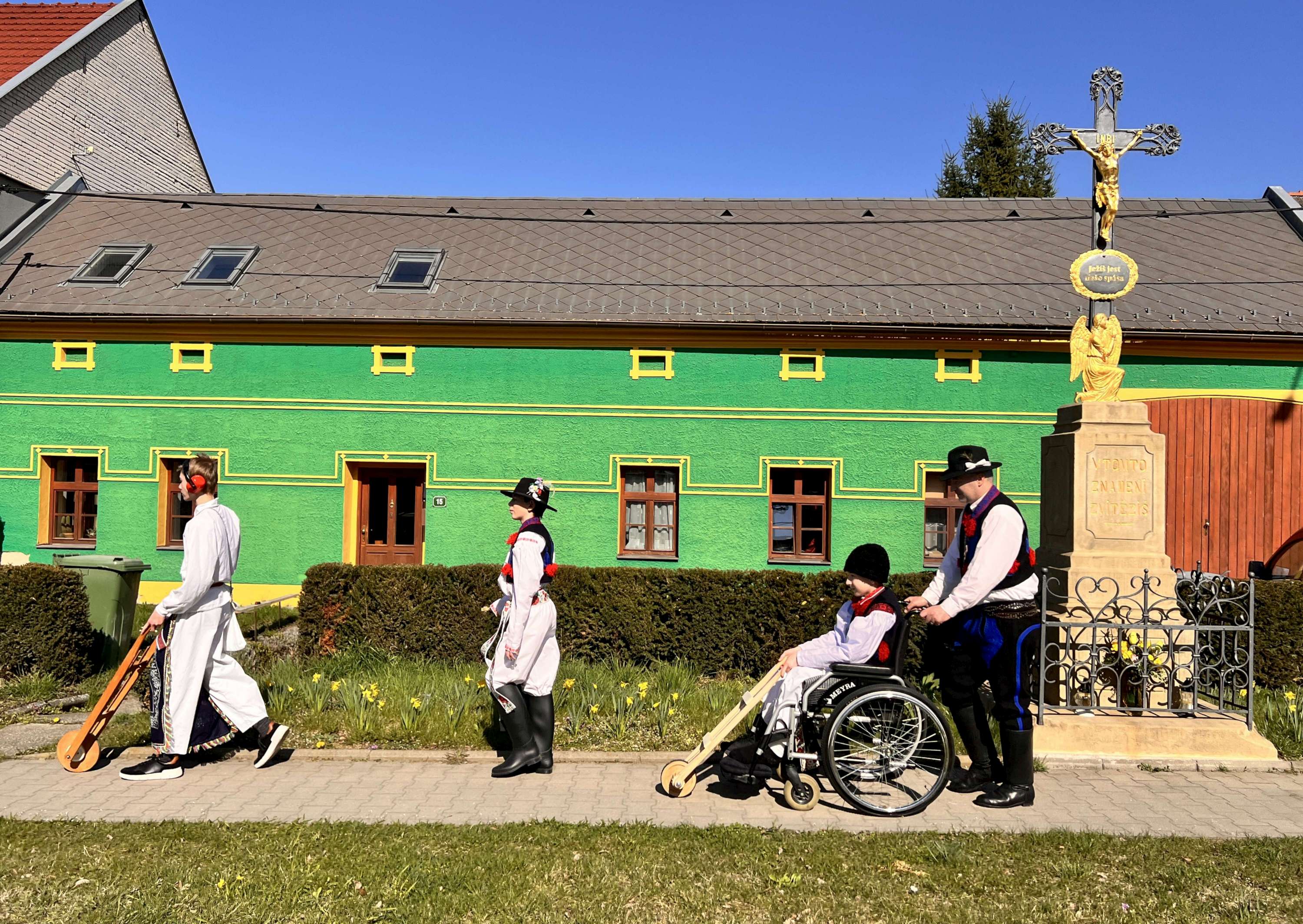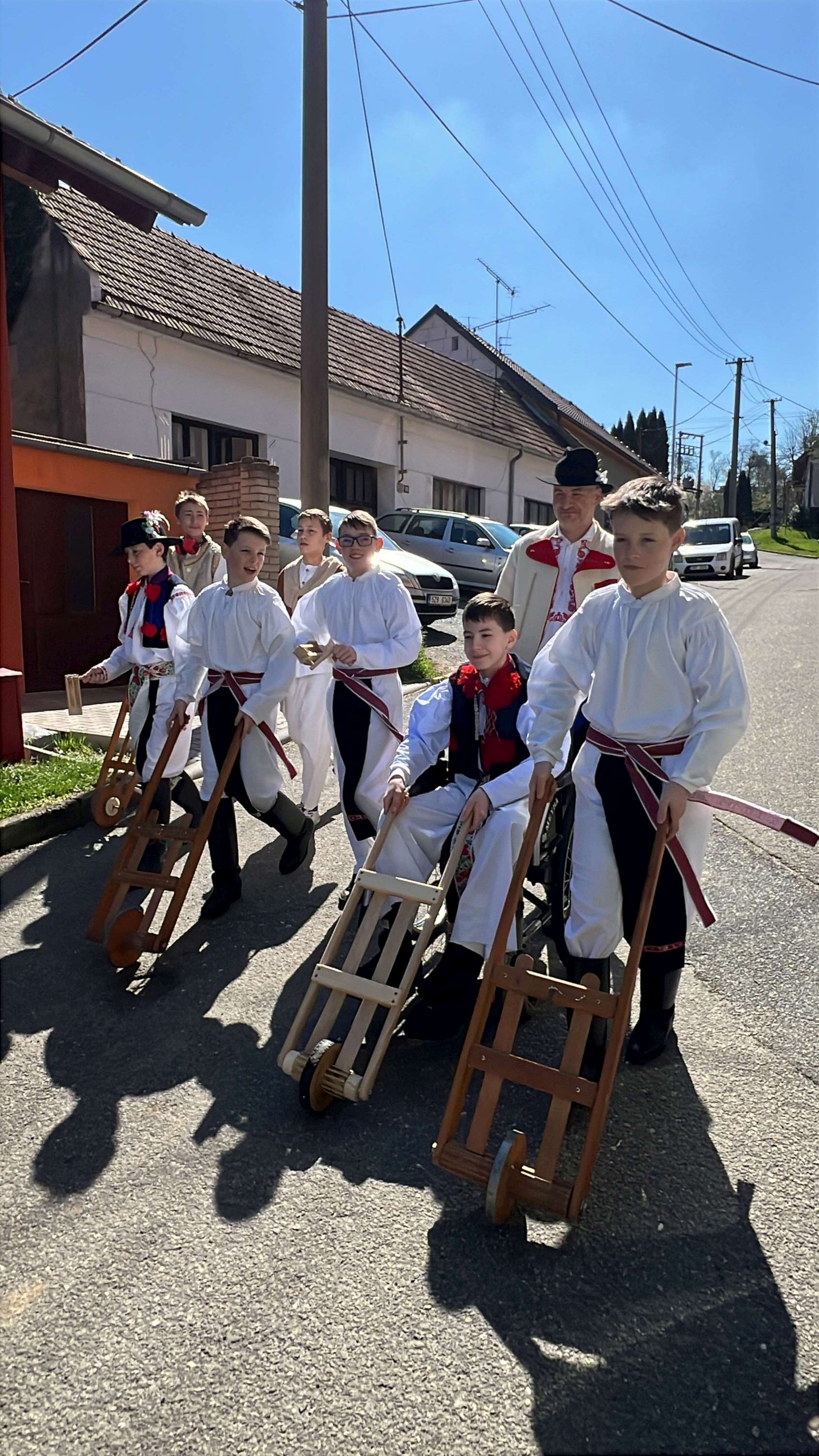 Na Velký pátek, již oblečeni v krojích, opakovali tento rituál hned třikrát. Při poledním hrkání se dokonce setkali na břehu Olšavy u podchodu obchvatu s hrkači ze sousedních Popovic.