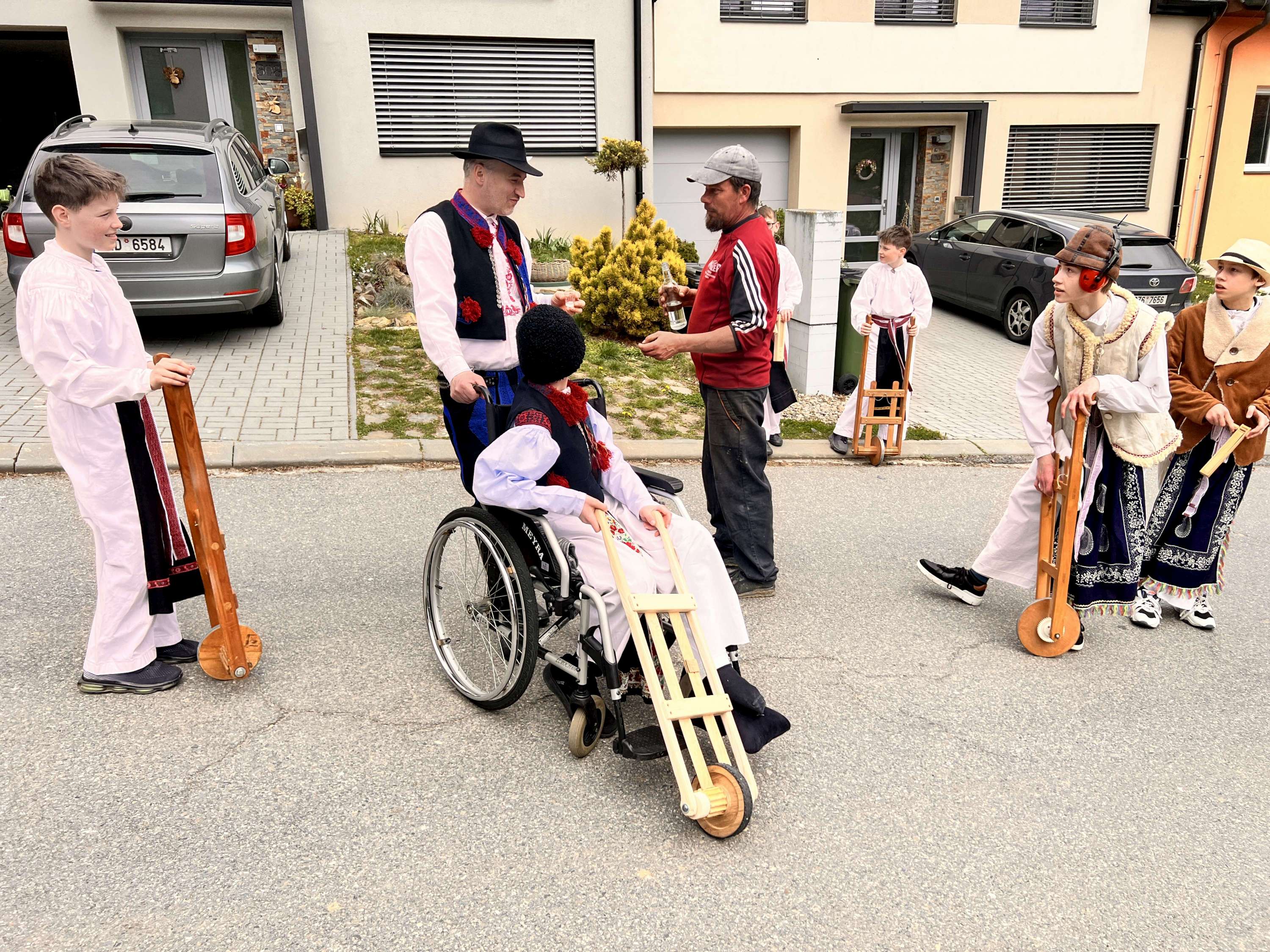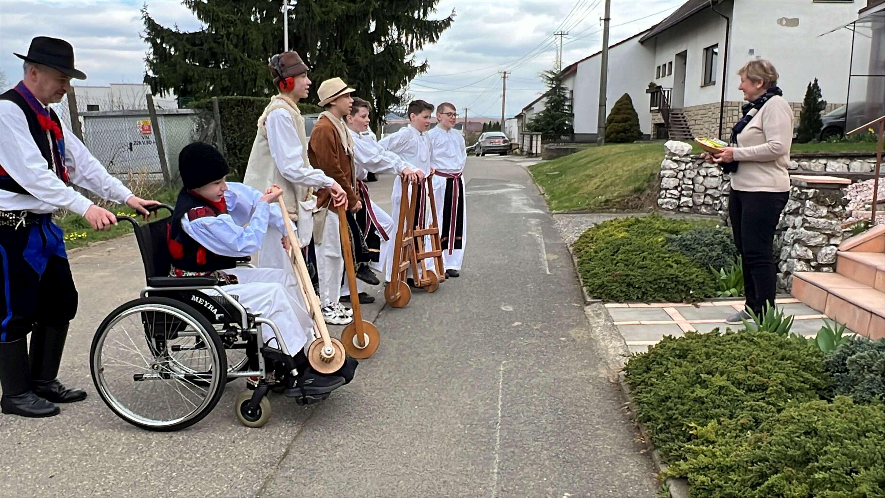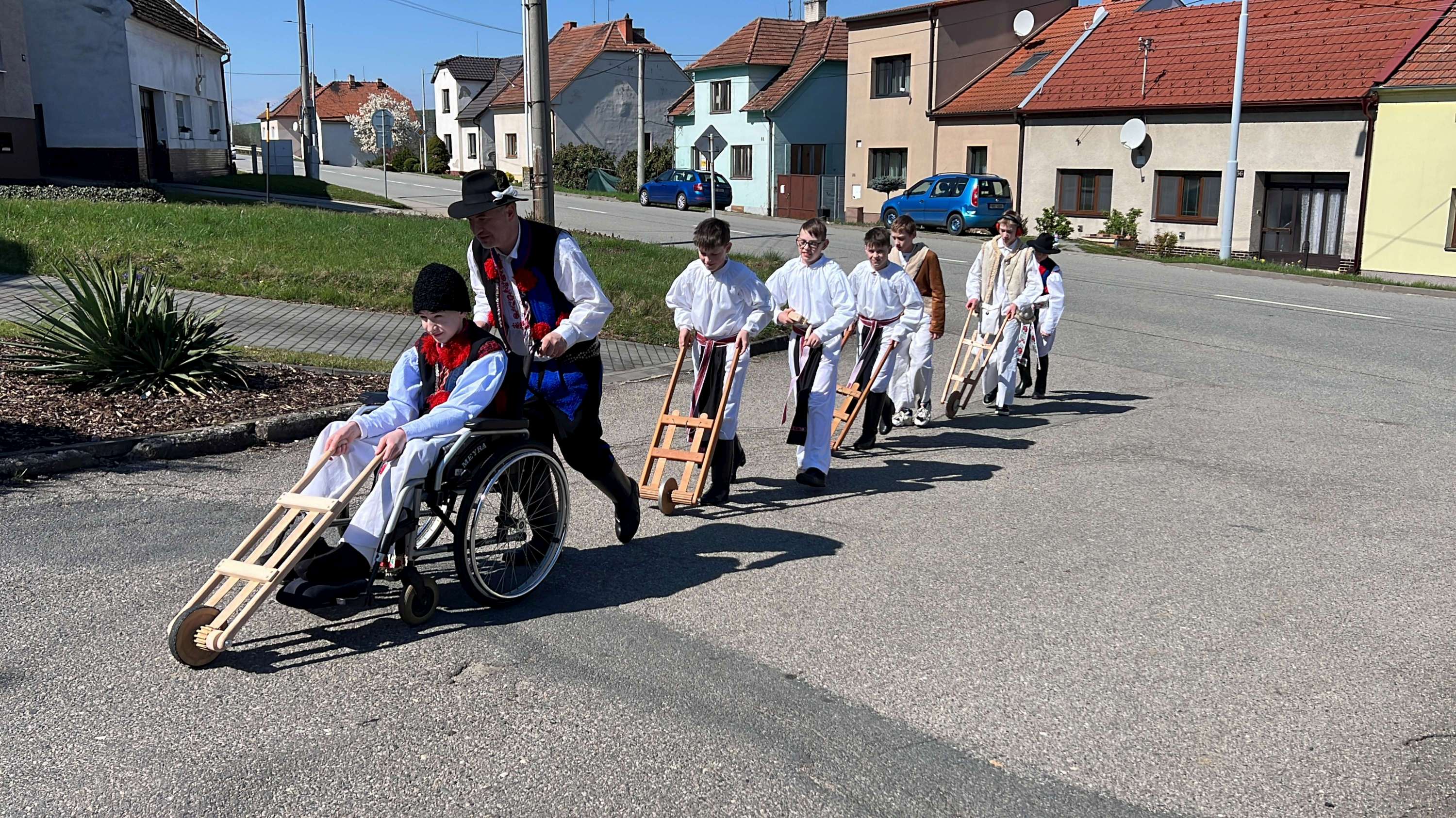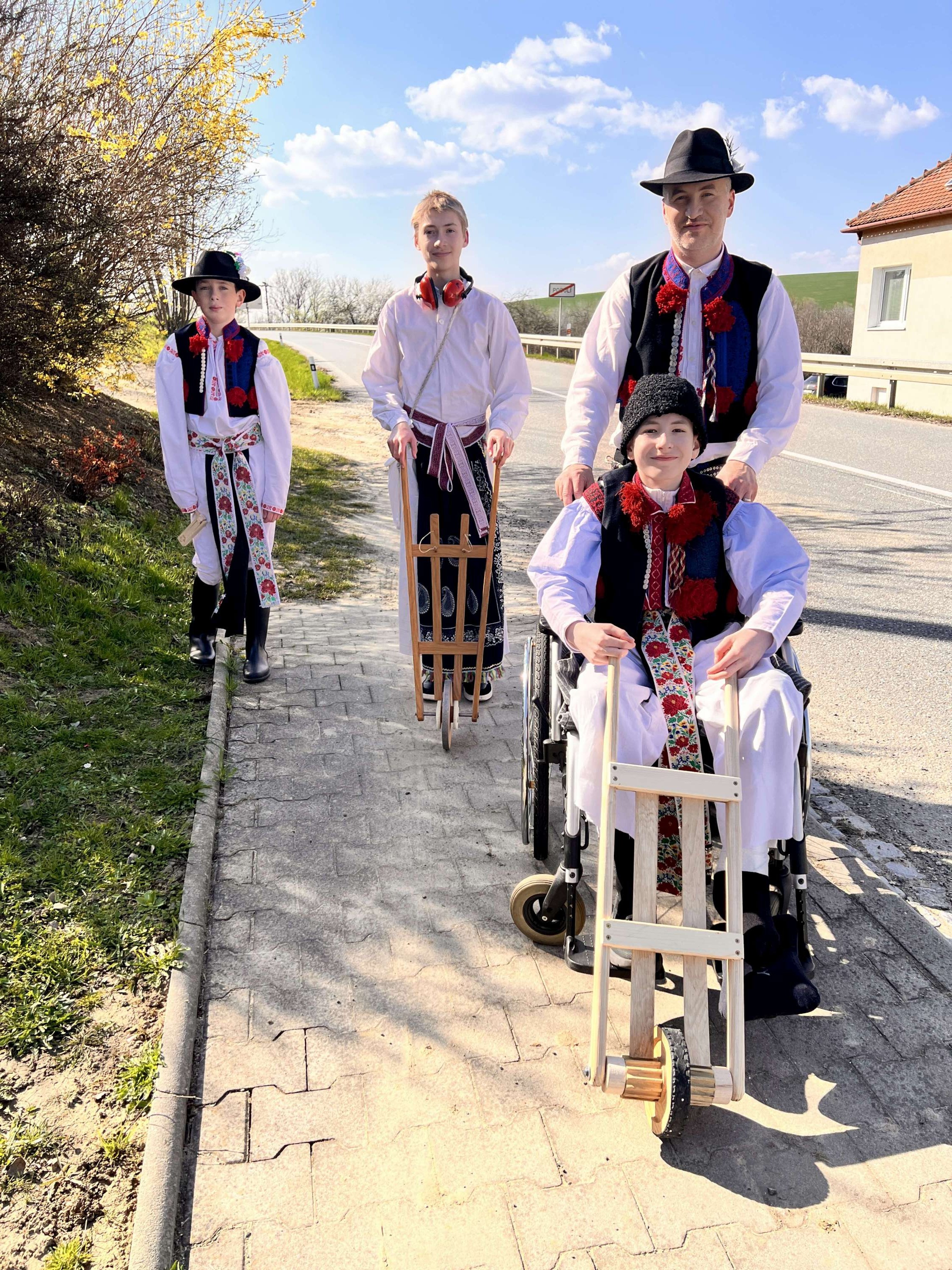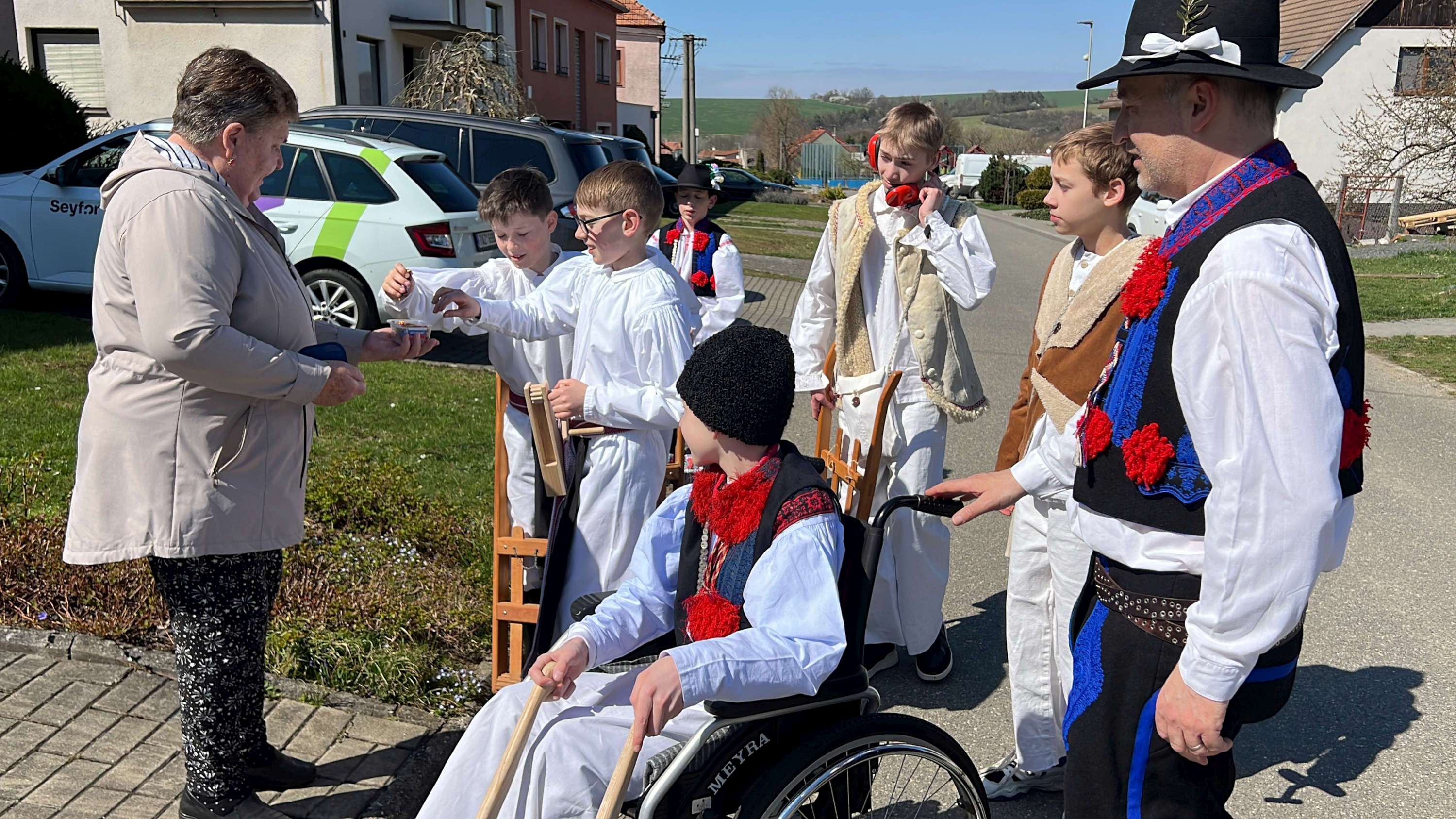 Na Velký pátek, již oblečeni v krojích, opakovali tento rituál hned třikrát. Při poledním hrkání se dokonce setkali na břehu Olšavy u podchodu obchvatu s hrkači ze sousedních Popovic.