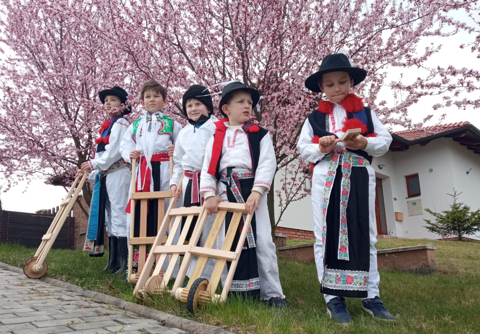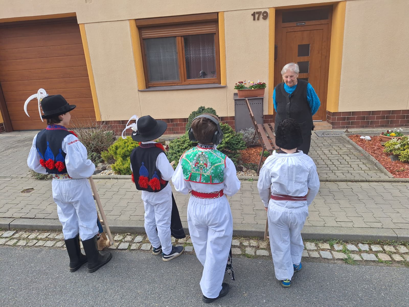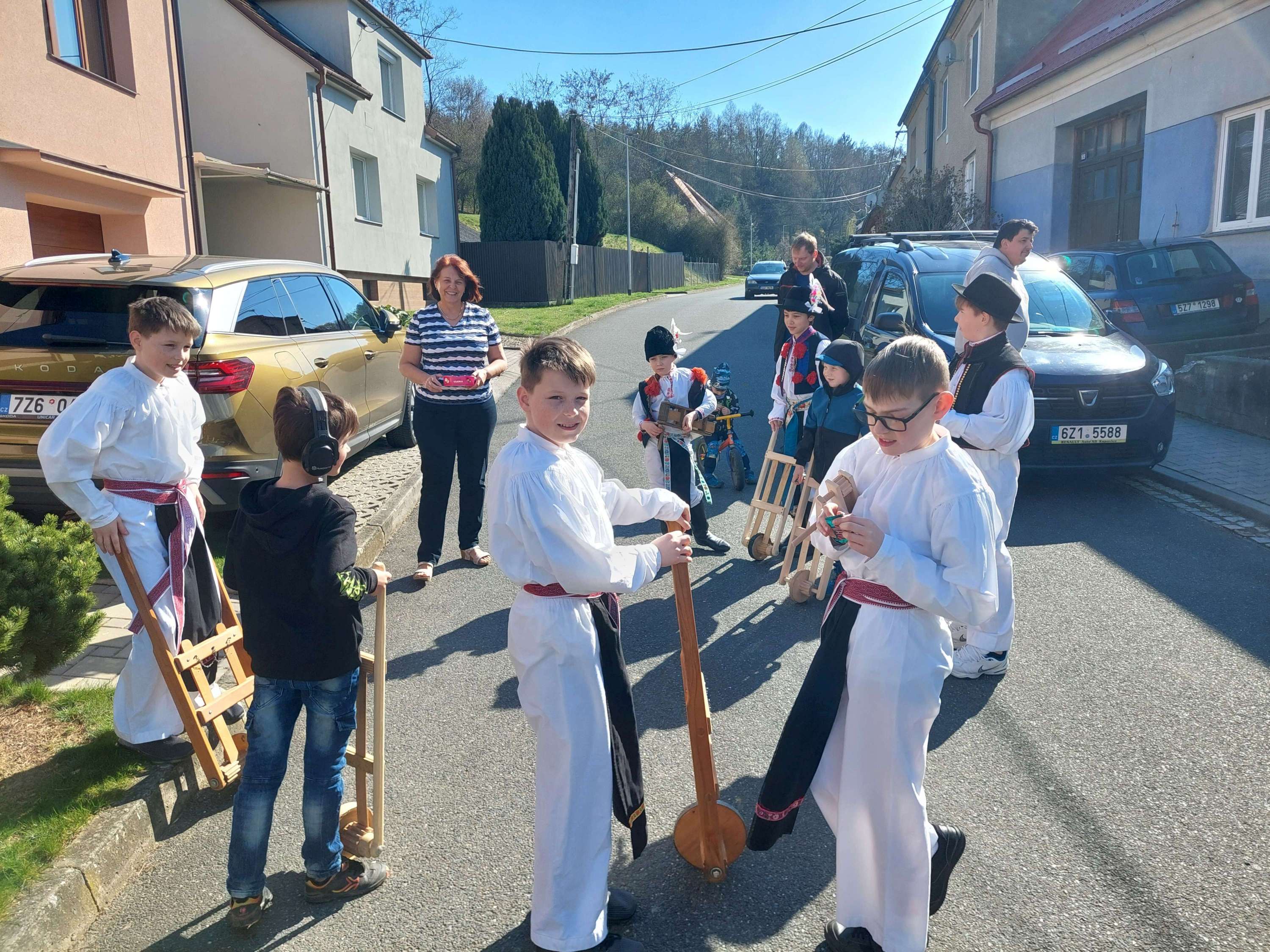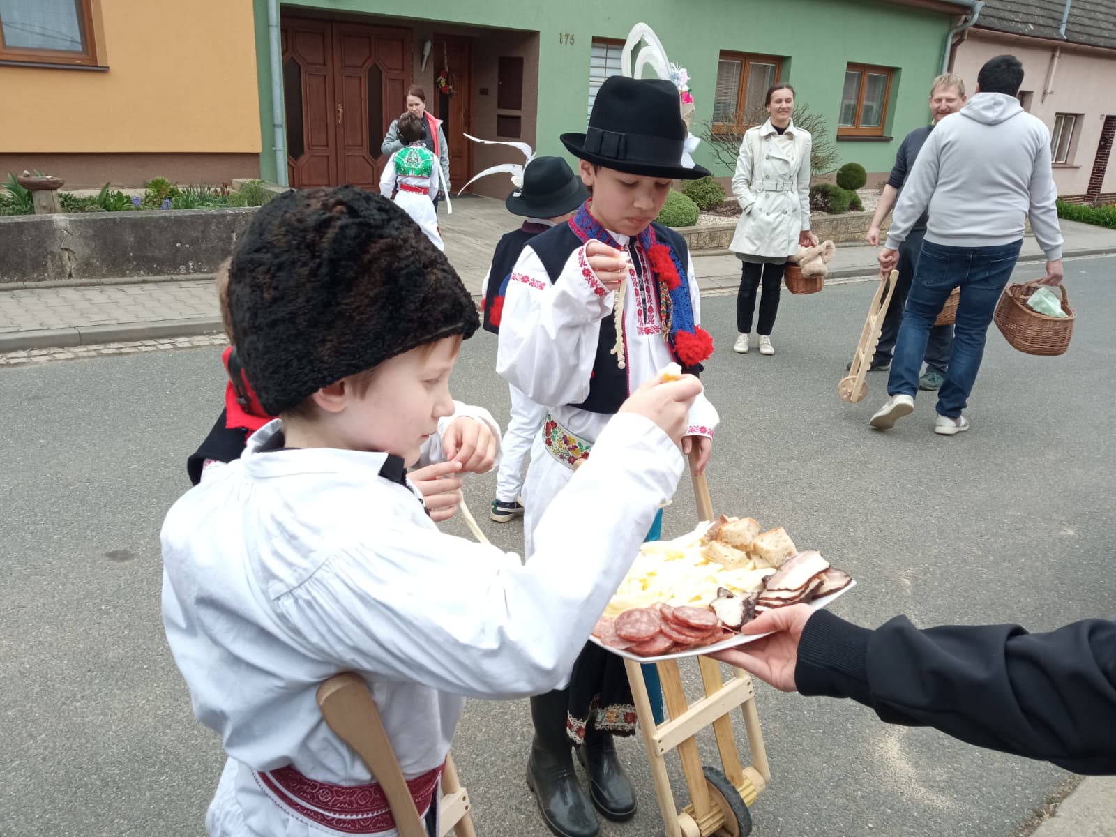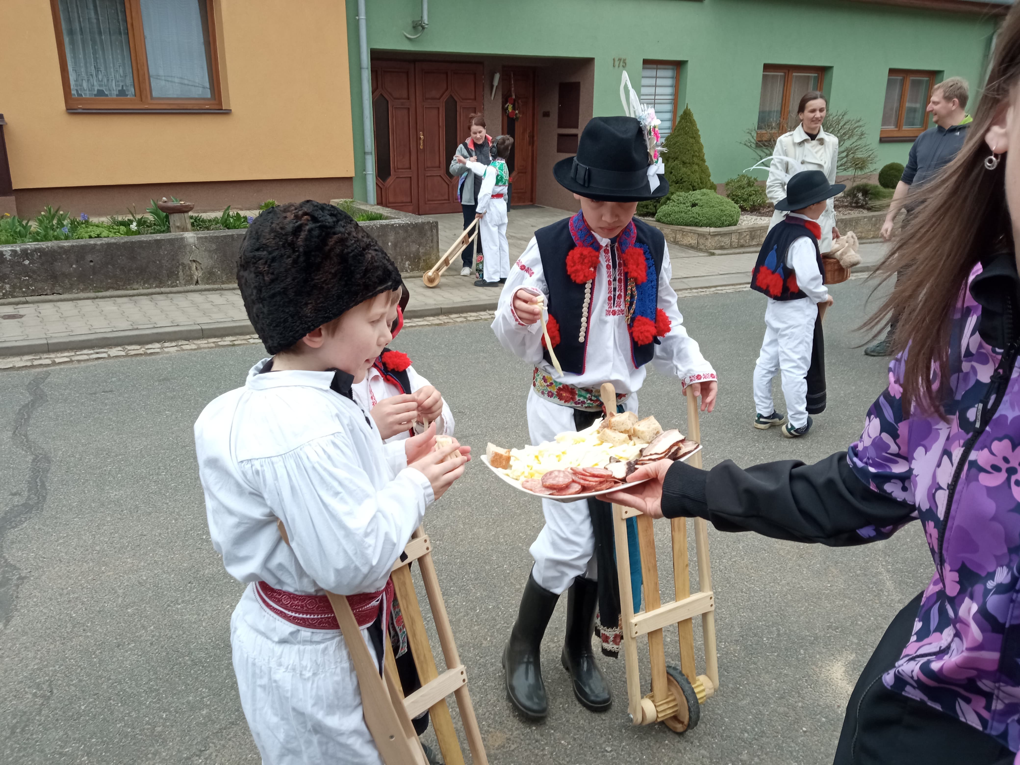 Příznivé počasí letošního roku umožnilo, aby slavnostně nastrojení chlapci v krojích vyrazili hrkat také na Bílou sobotu. Po poledním hrkání je u mnoha domů vítali přihlížející, kteří je za jejich třídenní obětavou službu odměnili. Chlapci se odvděčili nejen hrkáním, ale i tradiční říkankou: „Tetičko a strýčku, přišli k vám páni, abyste nám dali něco za hrkání!“