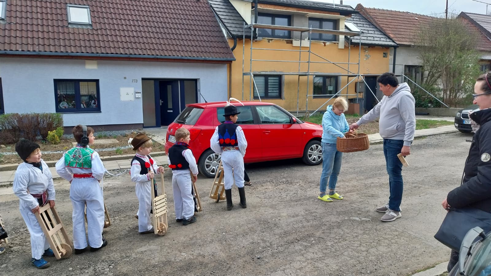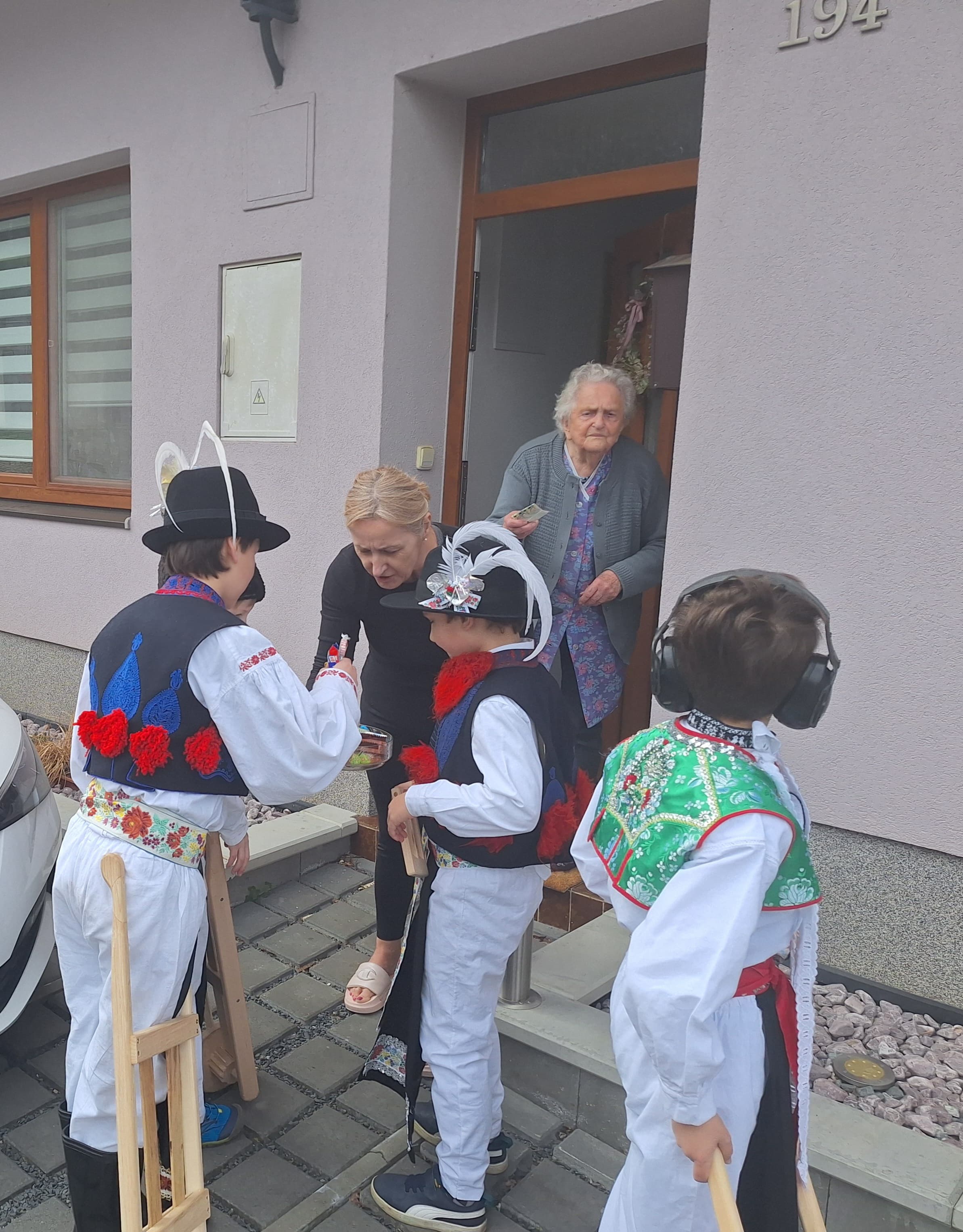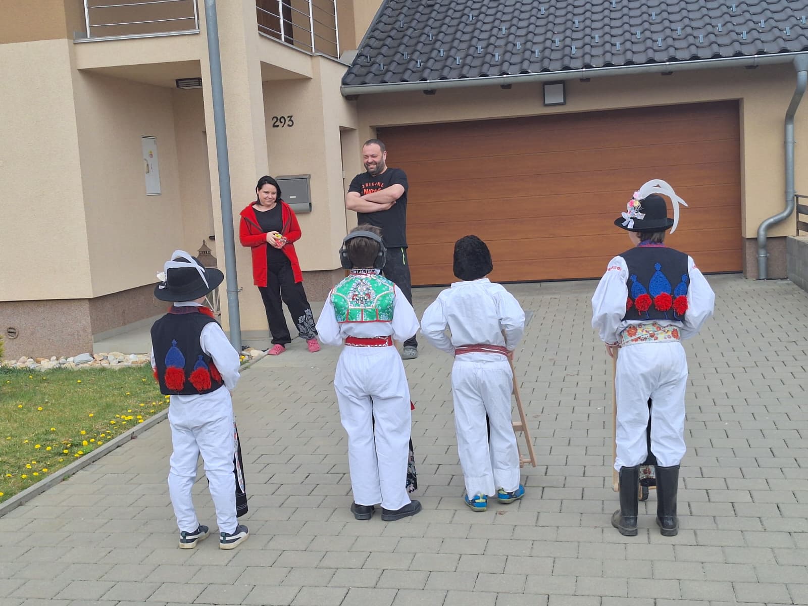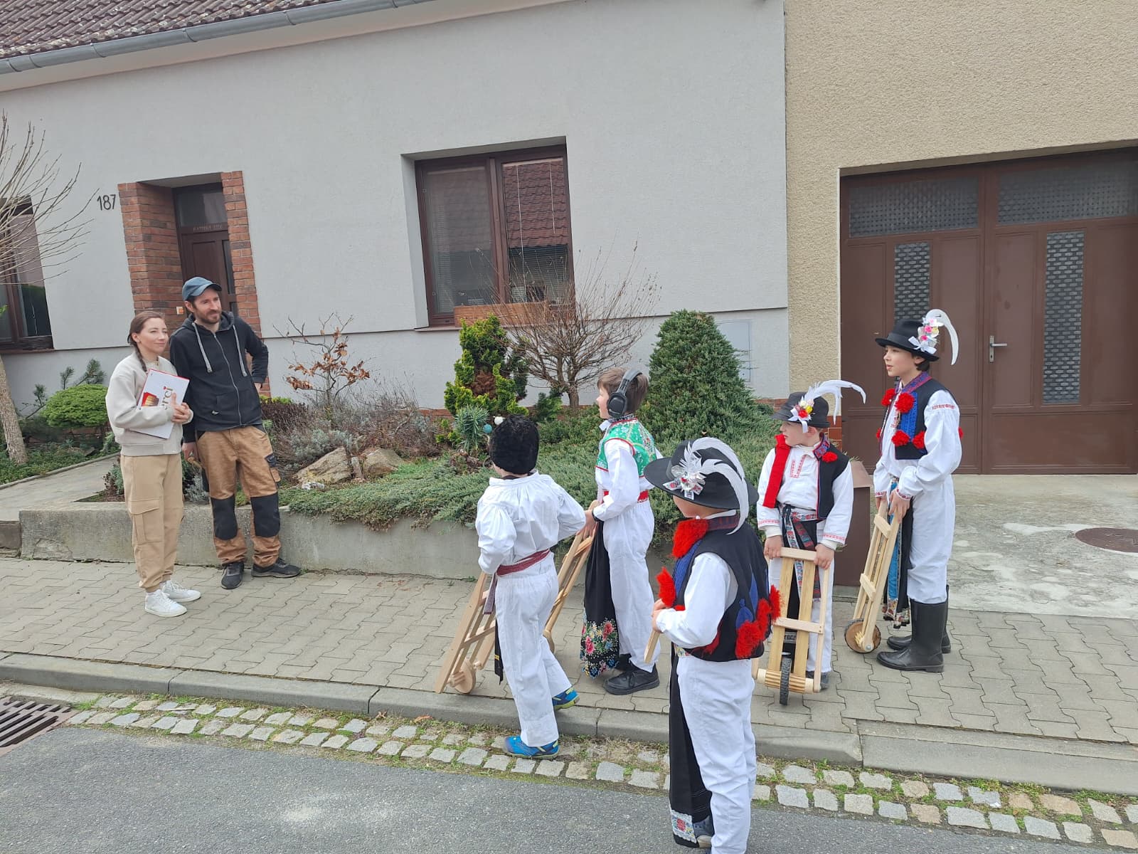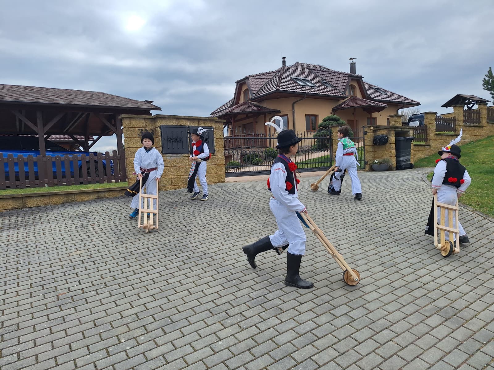 Příznivé počasí letošního roku umožnilo, aby slavnostně nastrojení chlapci v krojích vyrazili hrkat také na Bílou sobotu. Po poledním hrkání je u mnoha domů vítali přihlížející, kteří je za jejich třídenní obětavou službu odměnili. Chlapci se odvděčili nejen hrkáním, ale i tradiční říkankou: „Tetičko a strýčku, přišli k vám páni, abyste nám dali něco za hrkání!“