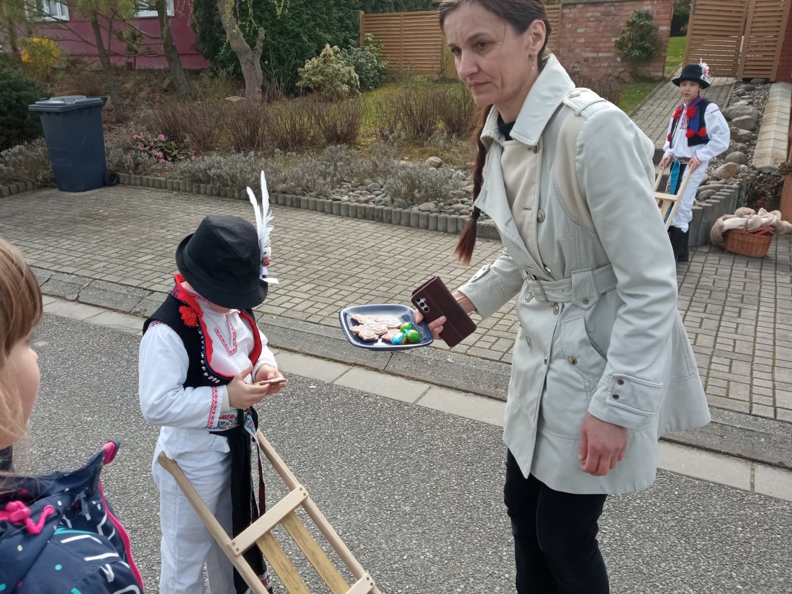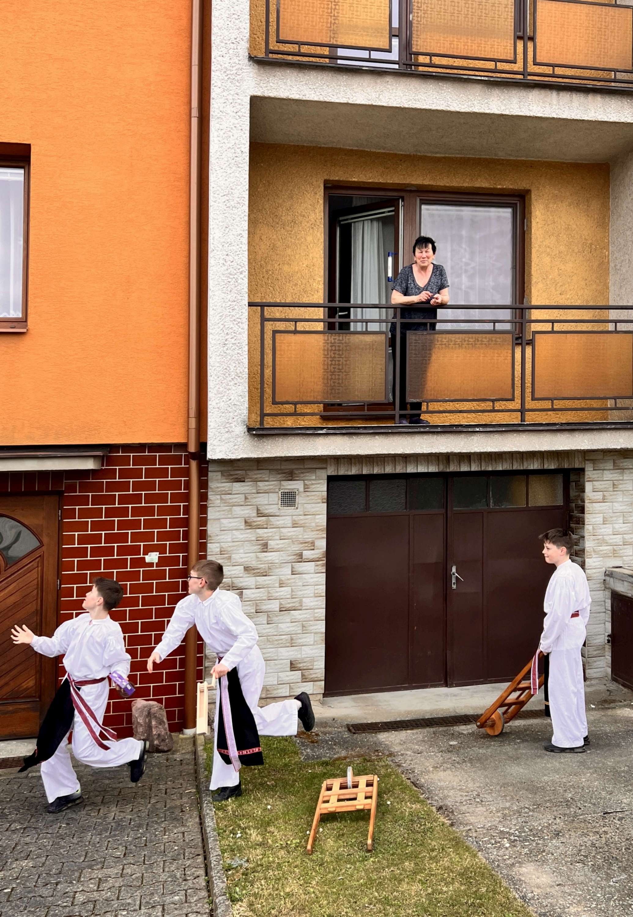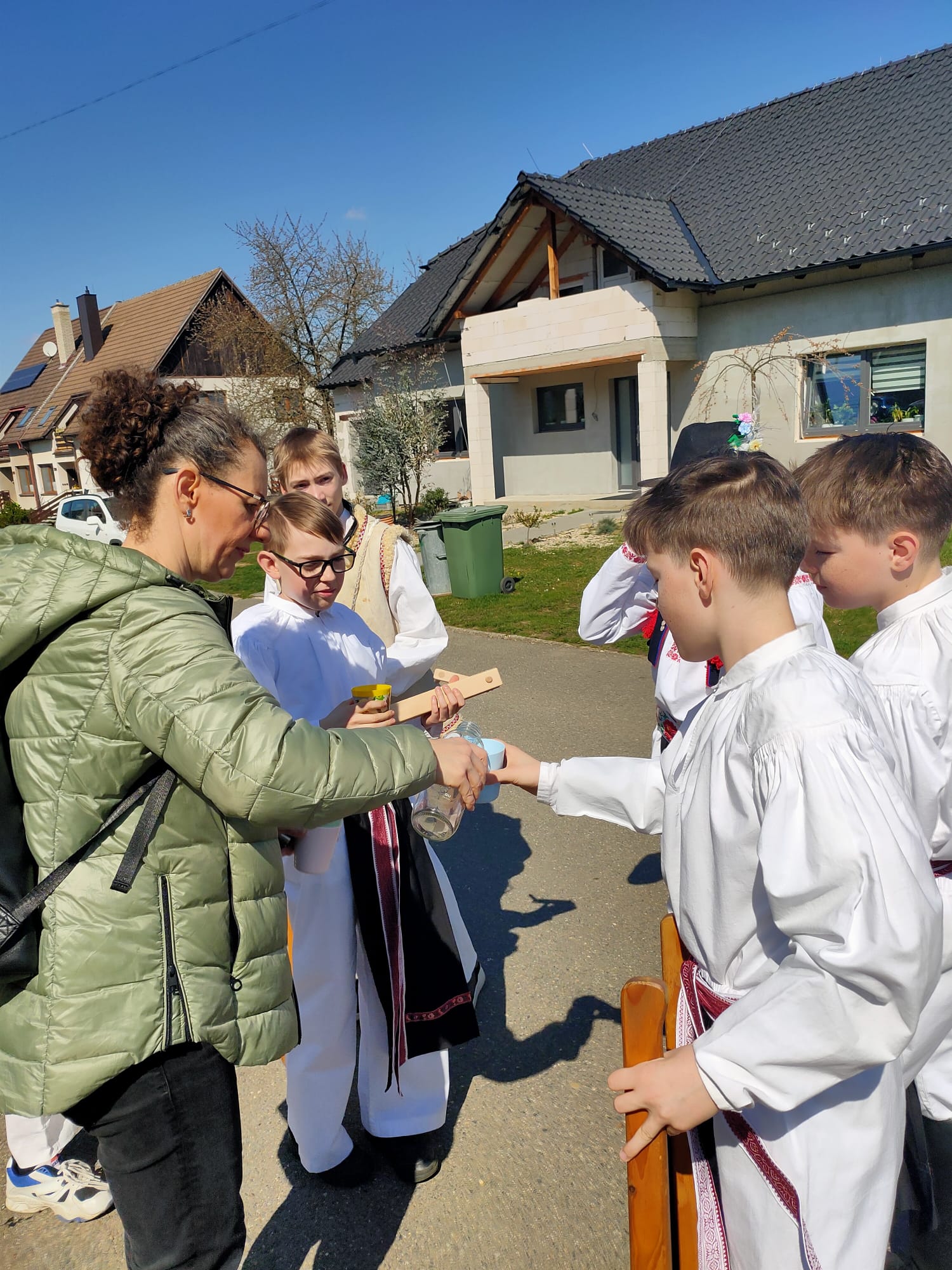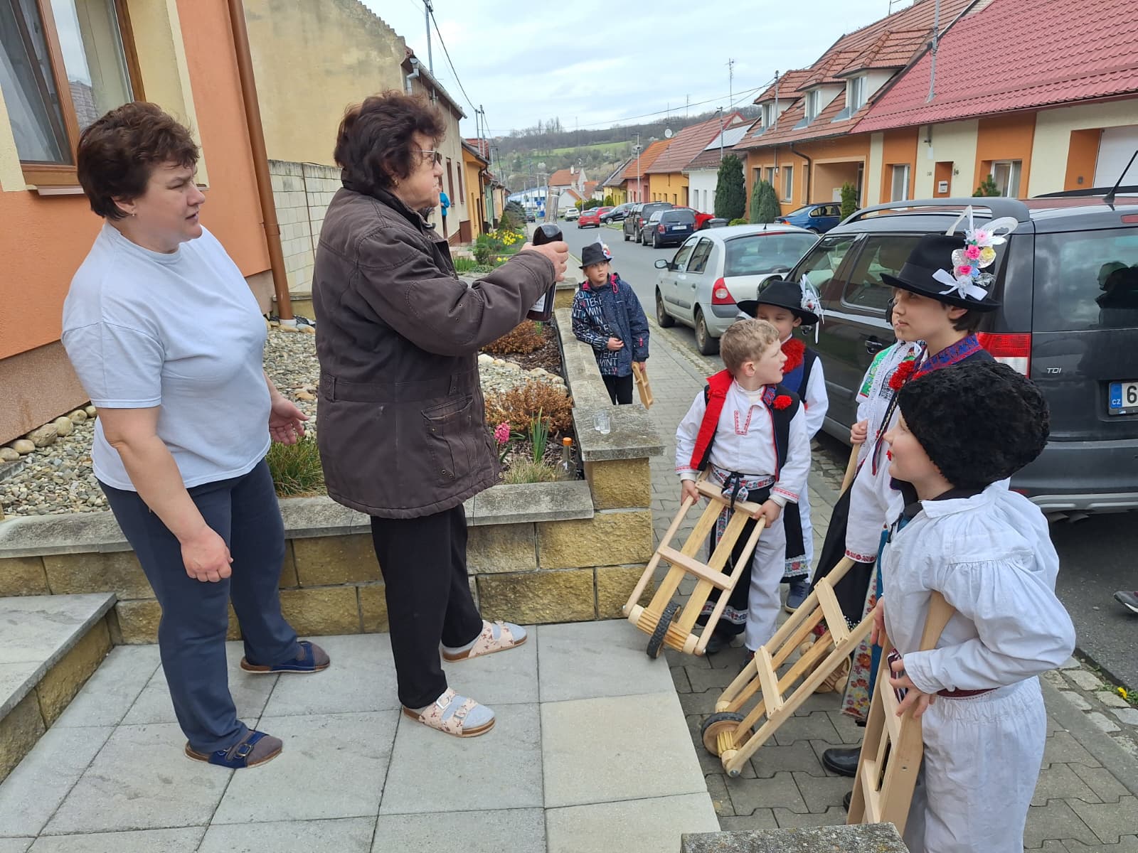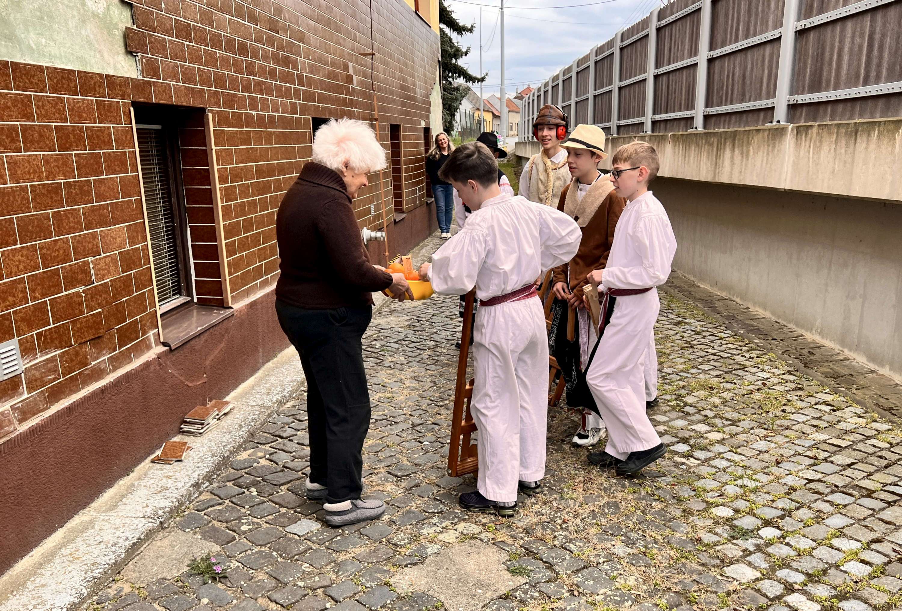 Příznivé počasí letošního roku umožnilo, aby slavnostně nastrojení chlapci v krojích vyrazili hrkat také na Bílou sobotu. Po poledním hrkání je u mnoha domů vítali přihlížející, kteří je za jejich třídenní obětavou službu odměnili. Chlapci se odvděčili nejen hrkáním, ale i tradiční říkankou: „Tetičko a strýčku, přišli k vám páni, abyste nám dali něco za hrkání!“